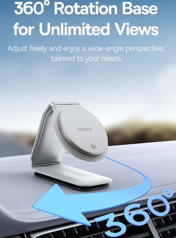 هولدر و شارژر بیسوس فقط مخصوص خودرو نیست؛ میتوانید از آن روی میز کار یا در کمپینگ نیز استفاده کنید. طراحی جمعوجور و ظاهر زیبا، آن را به یک پایه شارژ چندکاره و قابلحمل برای تمام موقعیتها تبدیل کرده است.