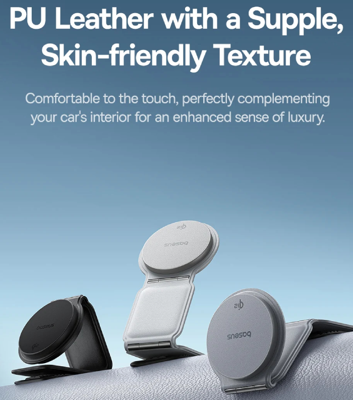 این متریال پریمیوم نهتنها حس لمس فوقالعادهای دارند، بلکه باعث میشوند پایه شارژر ظاهری شیک و مدرن داشته باشد که با فضای داخلی خودرو هماهنگ است.