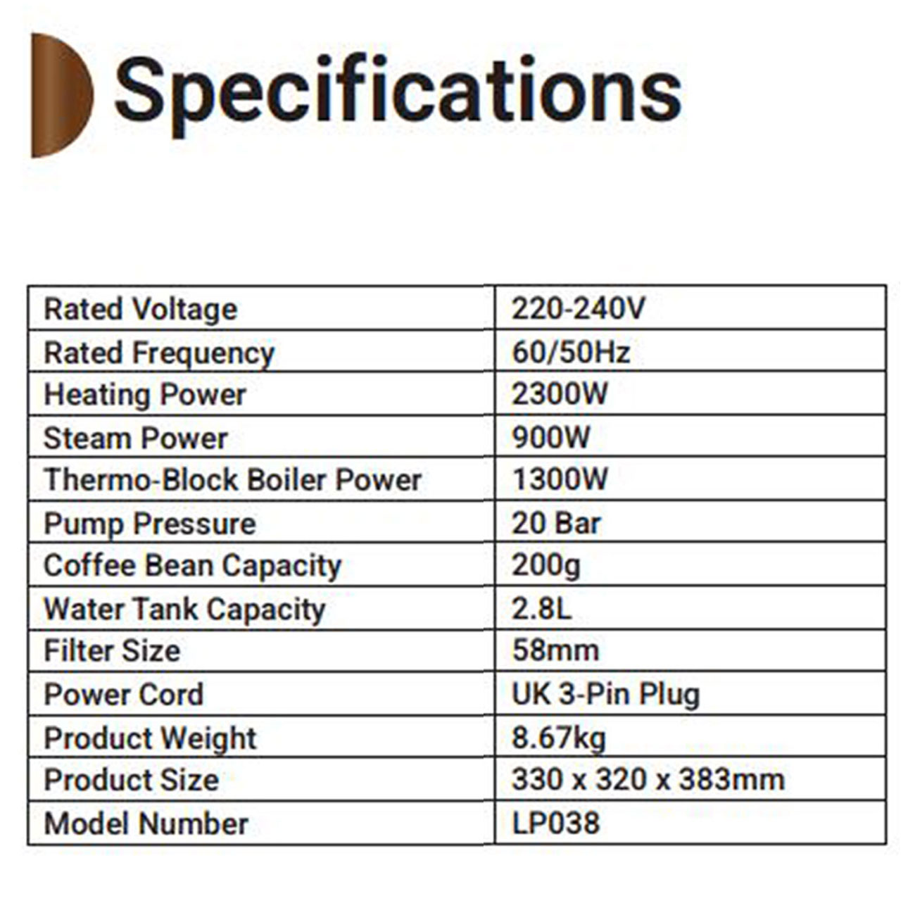 اسپرسوساز دو بویلر با آسیاب مخروطی و نازل بخار لپرسو LP038