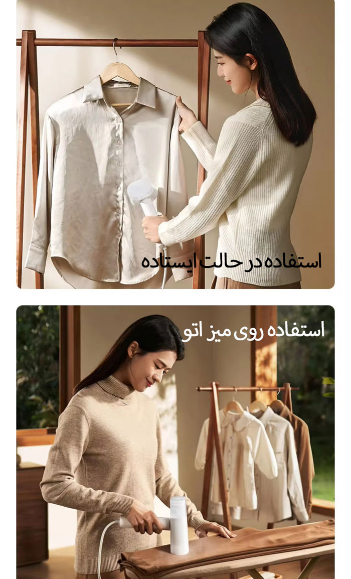 اتوبخار شیائومی به راحتی در حالتی که لباس ها از چوب لباسی آویز هستند و یا روی میز اتو، قابل استفاده است.