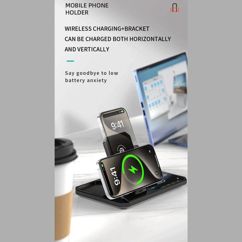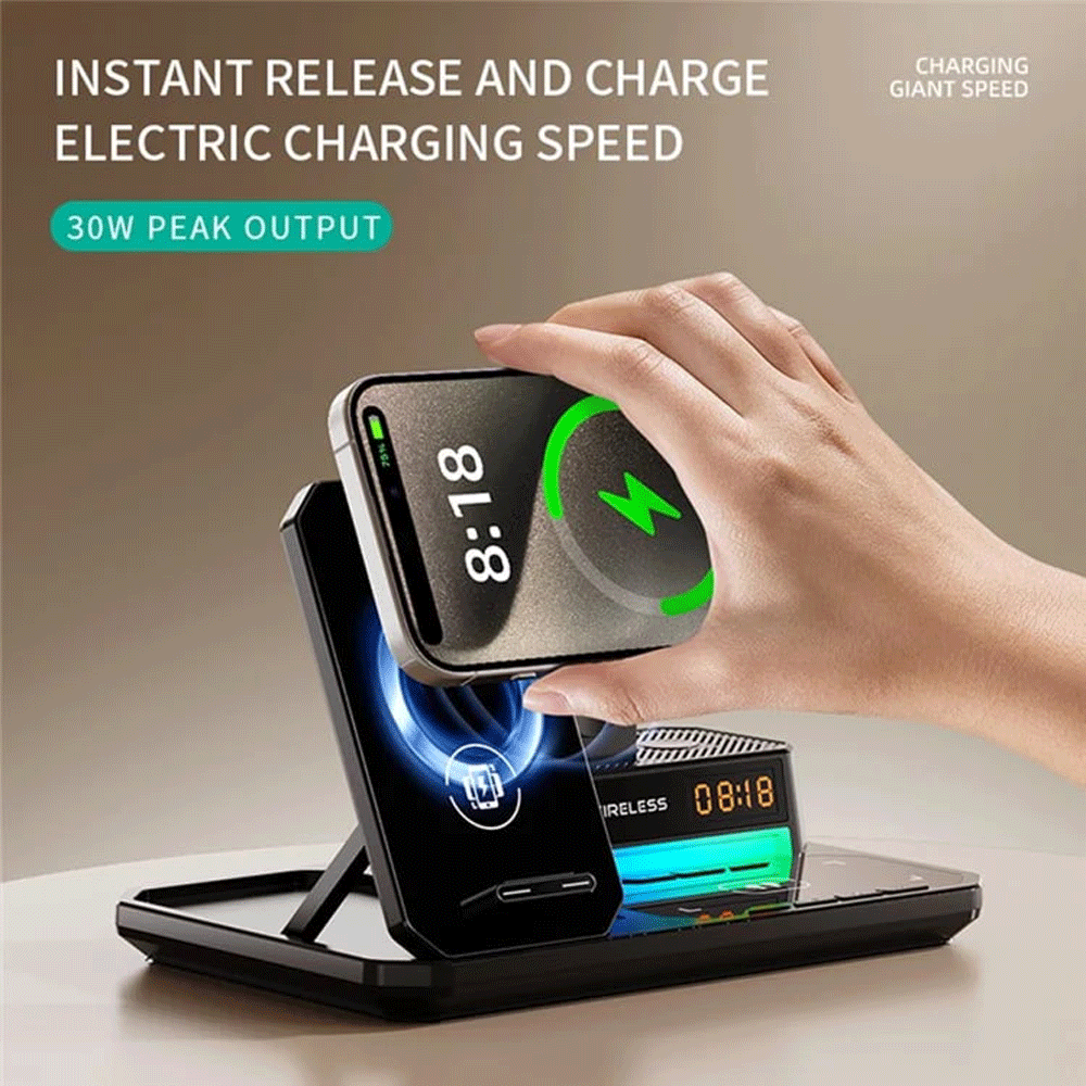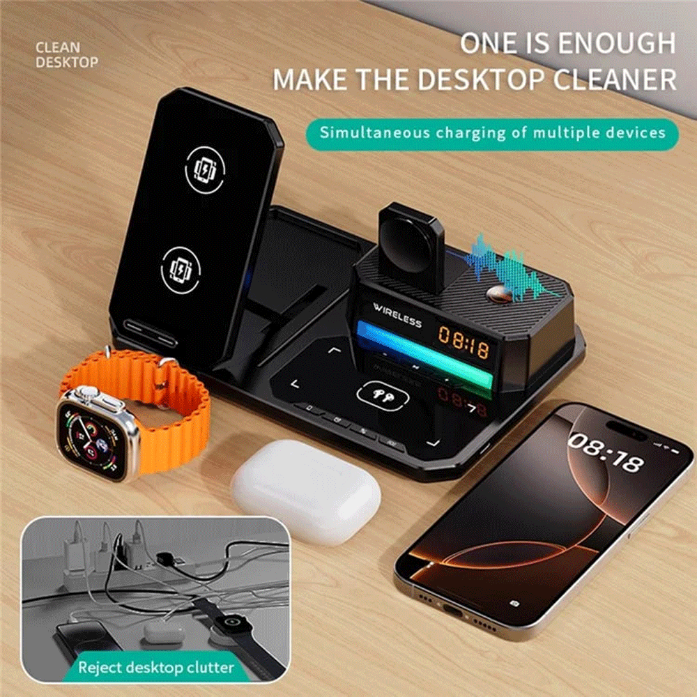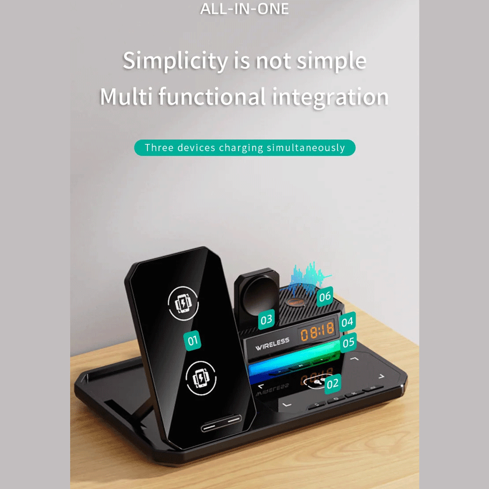 C18 6-in-1 Wireless Charger Digital Charging Station with Bluetooth-compatible Speaker RGB Light