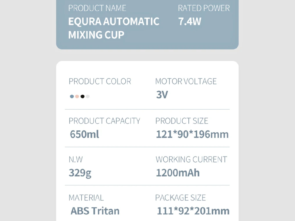 شیکر ورزشی شارژی 650 میلی لیتر EQURA Automatic Mixing Cup EQURA E-001-1