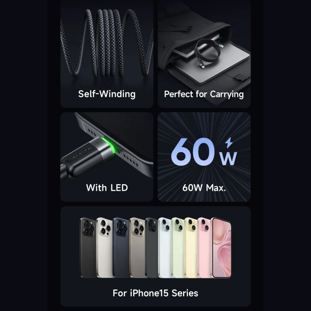 Mcdodo CA-2000 USB-C to USB-C 60W Magnetic Self-Winding Cable 1.2m