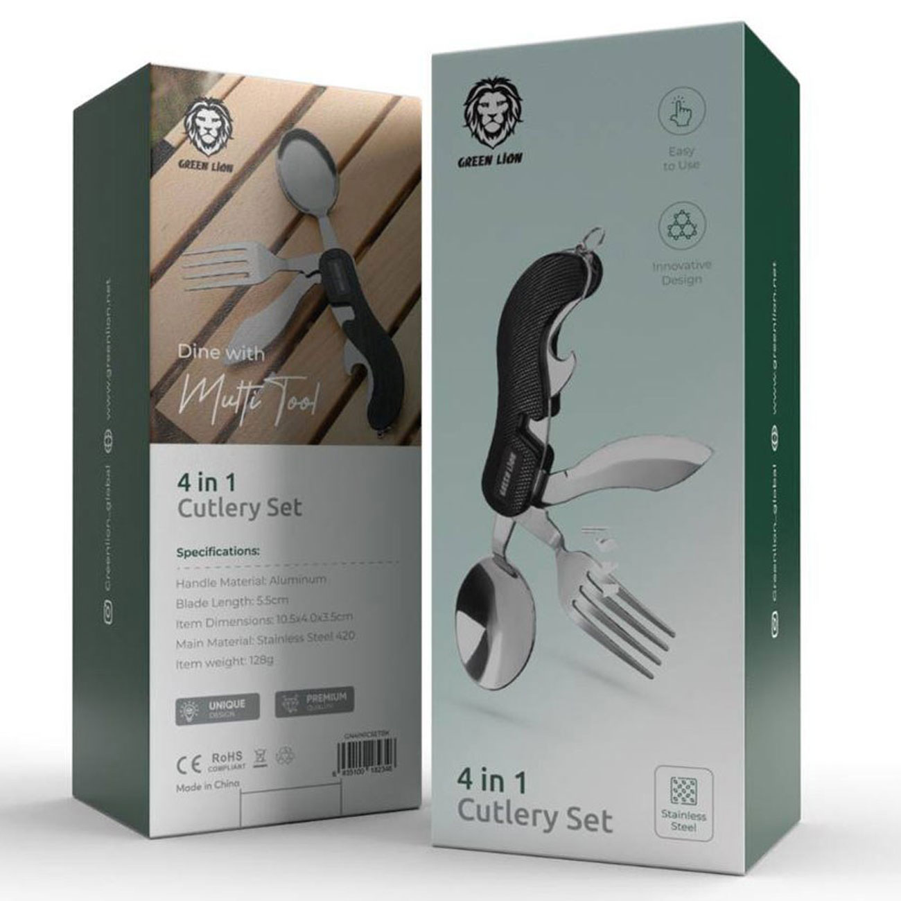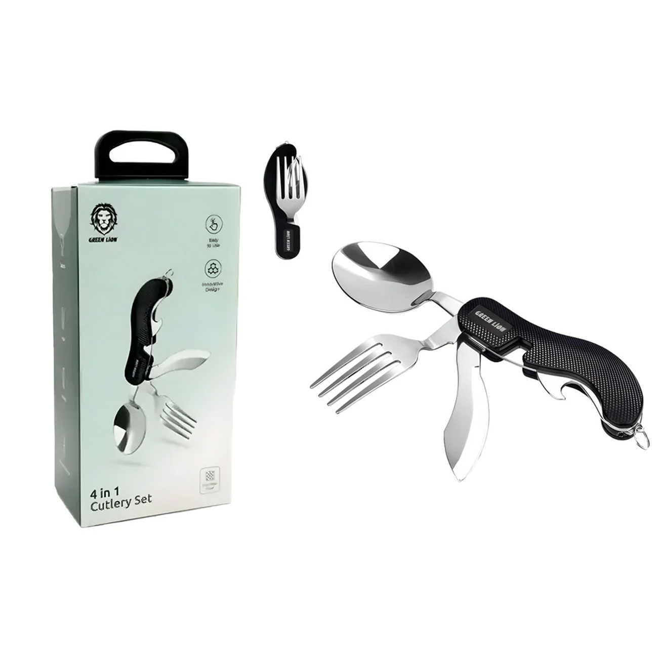 ست قاشق، چنگال، کارد و دربازکن بطری مسافرتی و کمپینگ گرینلاین GN-4IN1CSETBK