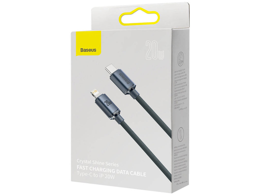 مشخصات کابل تایپسی به لایتنینگ بیسوس Baseus CAJY000301 Crystal Shine Series Fast Charging Data Cable Type-C to iP 20W 2m Black | |