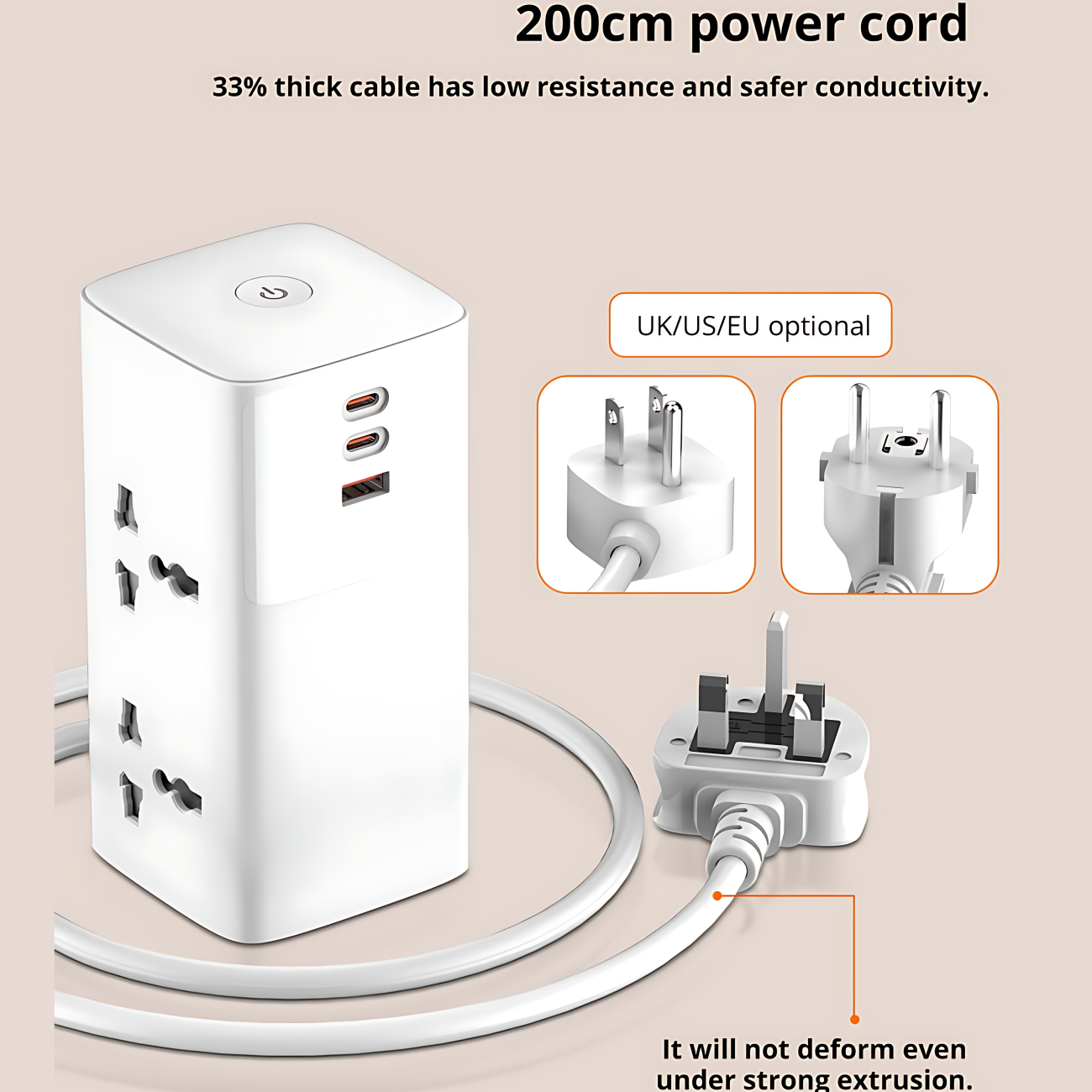 چند راهی و محافظ برق 2500 وات چهار سوکت، دو تایپ سی و یک یو اس بی 70 وات شارژ سریع رومیزی الدنیو SC4383