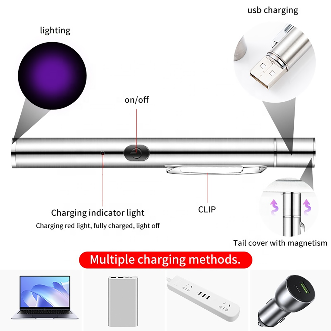 SmilingShark 9188 UV Torch light LED purple Flashlight with pen clip UV365nm Special purple light for illuminating jade Pet Fungus Urine Fluorescent
