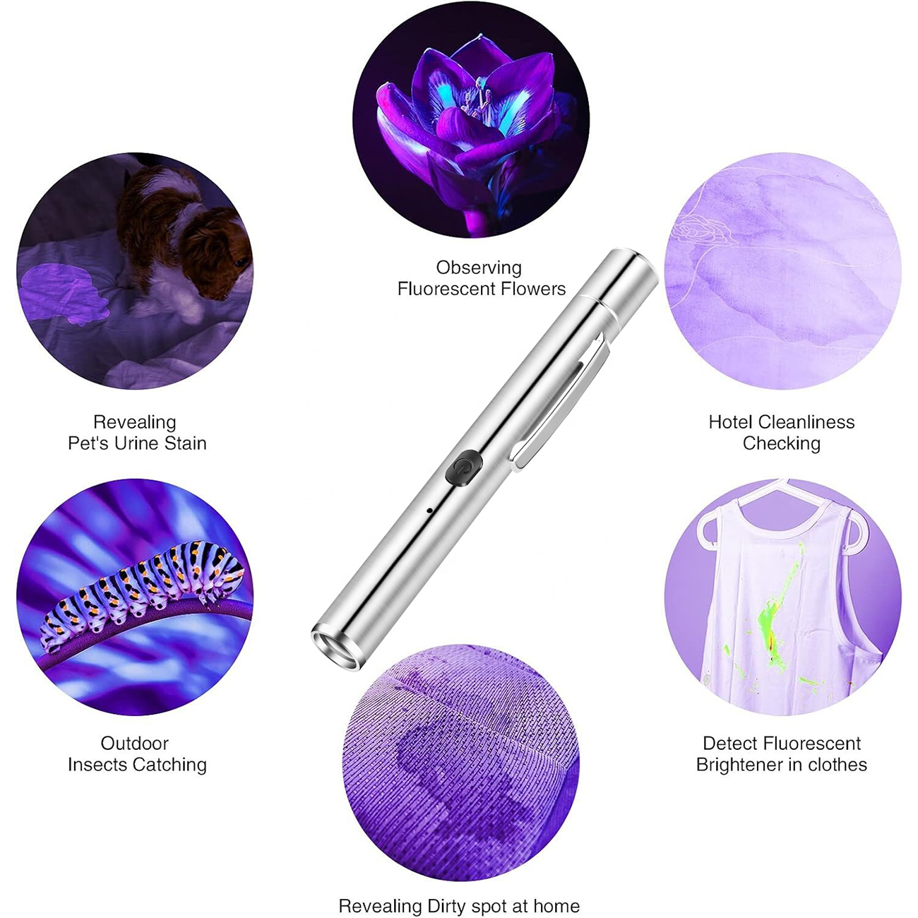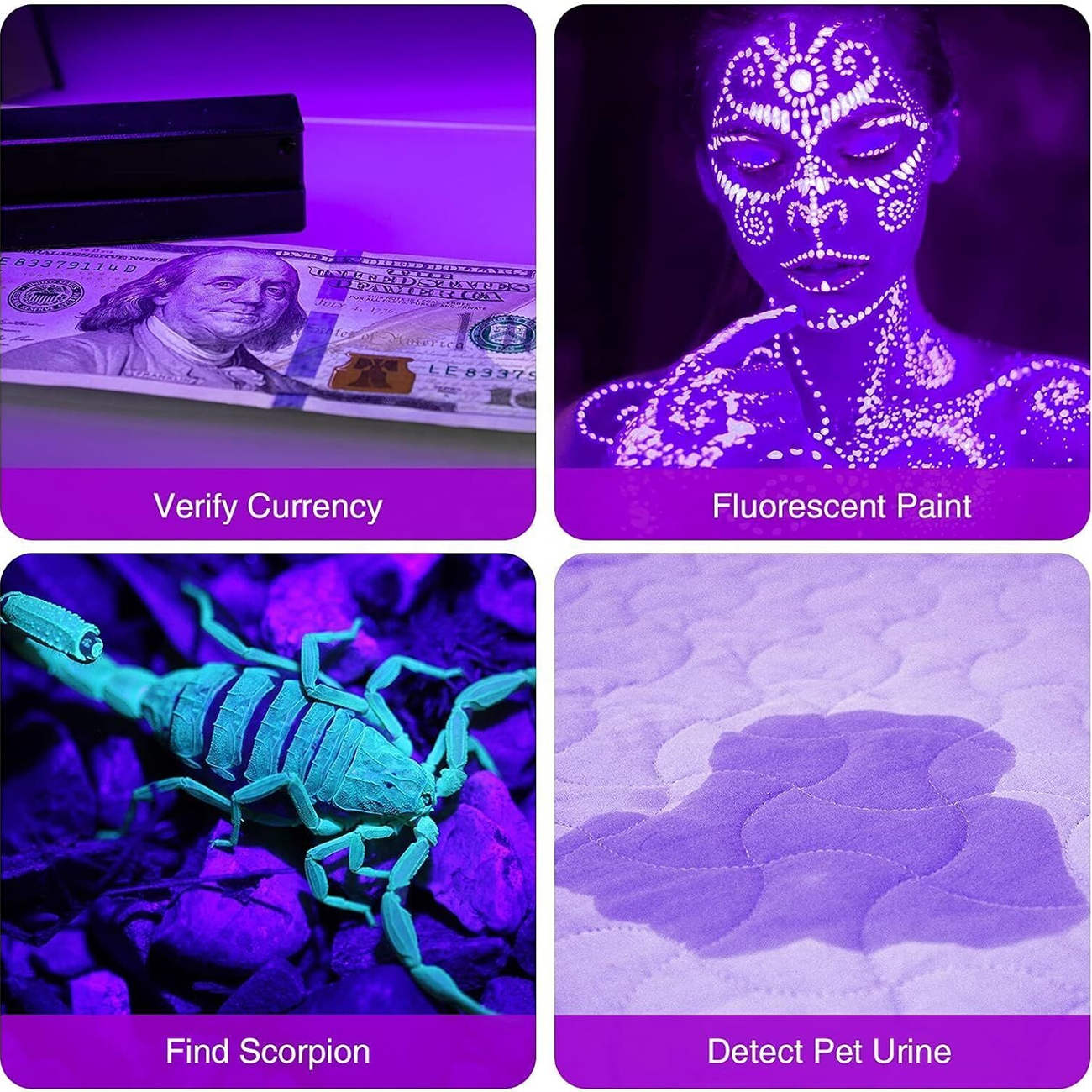 کاربری بالا | آشکارسازی ادرار و لکههای حیوانات خانگی (تمیزکاری بهداشتی)/ تشخیص قارچها و کرمهای پوستی در حیوانات یا گیاهان/ پخت رزین و بررسی کیفیت اتصال در کارهای هنری/صنعتی/ تأیید اصالت اسکناس و اسناد (کدهای امنیتی)/ شناسایی نشتیهای فلورسنت و بعضی عیوب سطحی در بازرسیهای NDT سبک/ آشکارسازی عقربها یا حشرات فلورسنت در محیط تاریک |