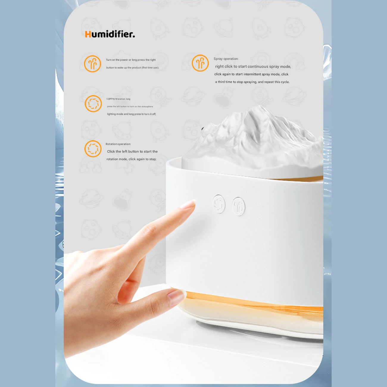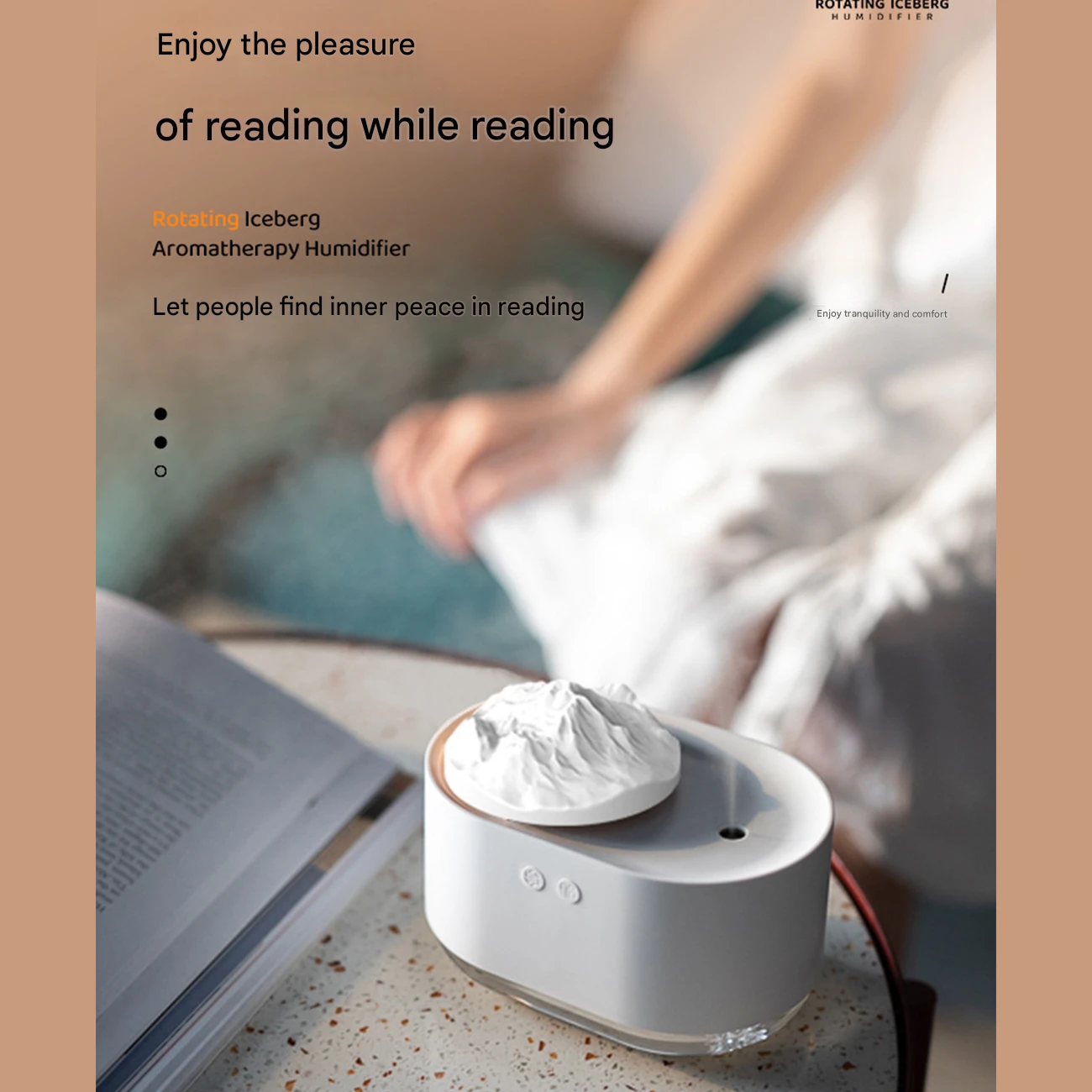 ویژگیهای خاص | طراحی کوه یخ چرخان، نورپردازی آرامشبخش، رطوبتسازی بیصدا |