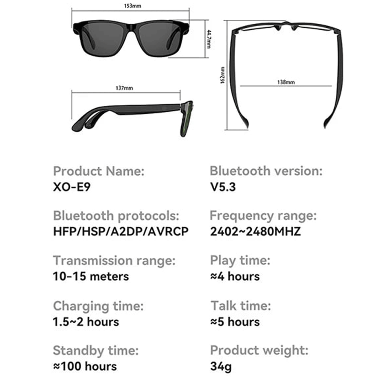 XO E9 Smart Sunglasses UV Protective