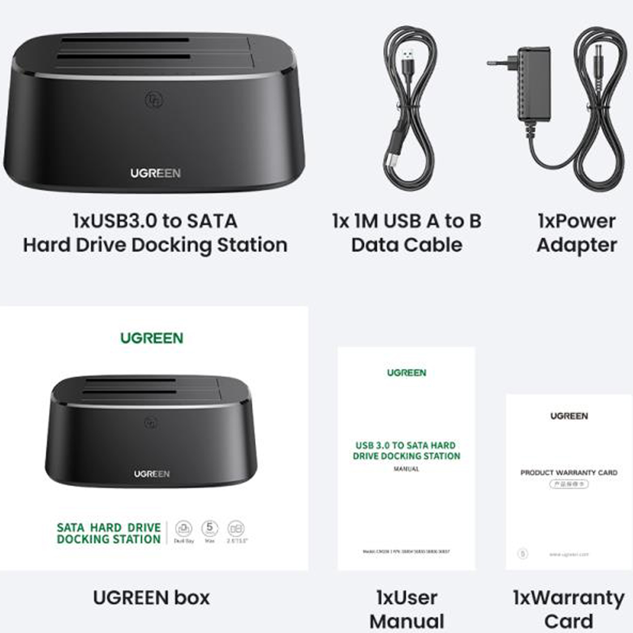 Ugreen CM198 50857 docking station with USB 3.0 for SATA 2.5" 3.5" SSD HHD drives, EU power supply