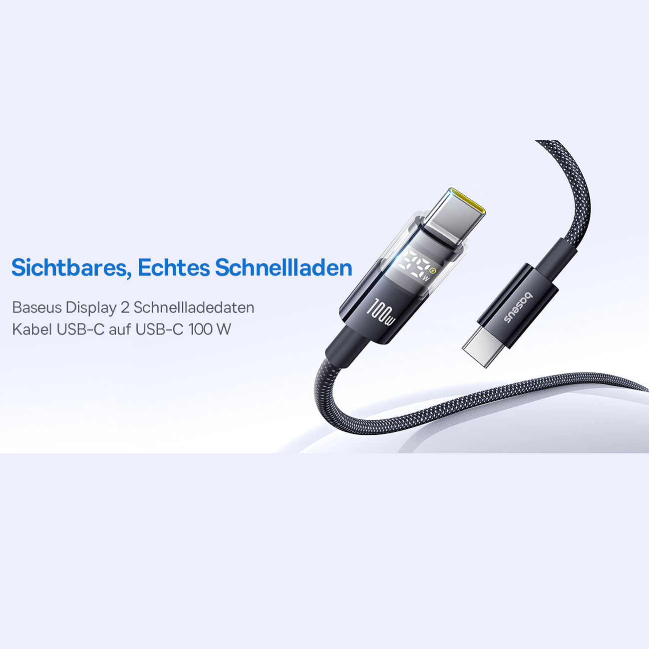 کابل فست شارژ یواسبی به تایپسی 100 وات یک متری بیسوس Display 2 p10382701121-00