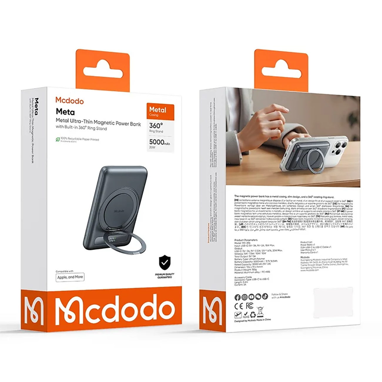 پاور بانک وایرلس 15 وات و تایپ سی 20 وات 5000 مک دودو MC-836