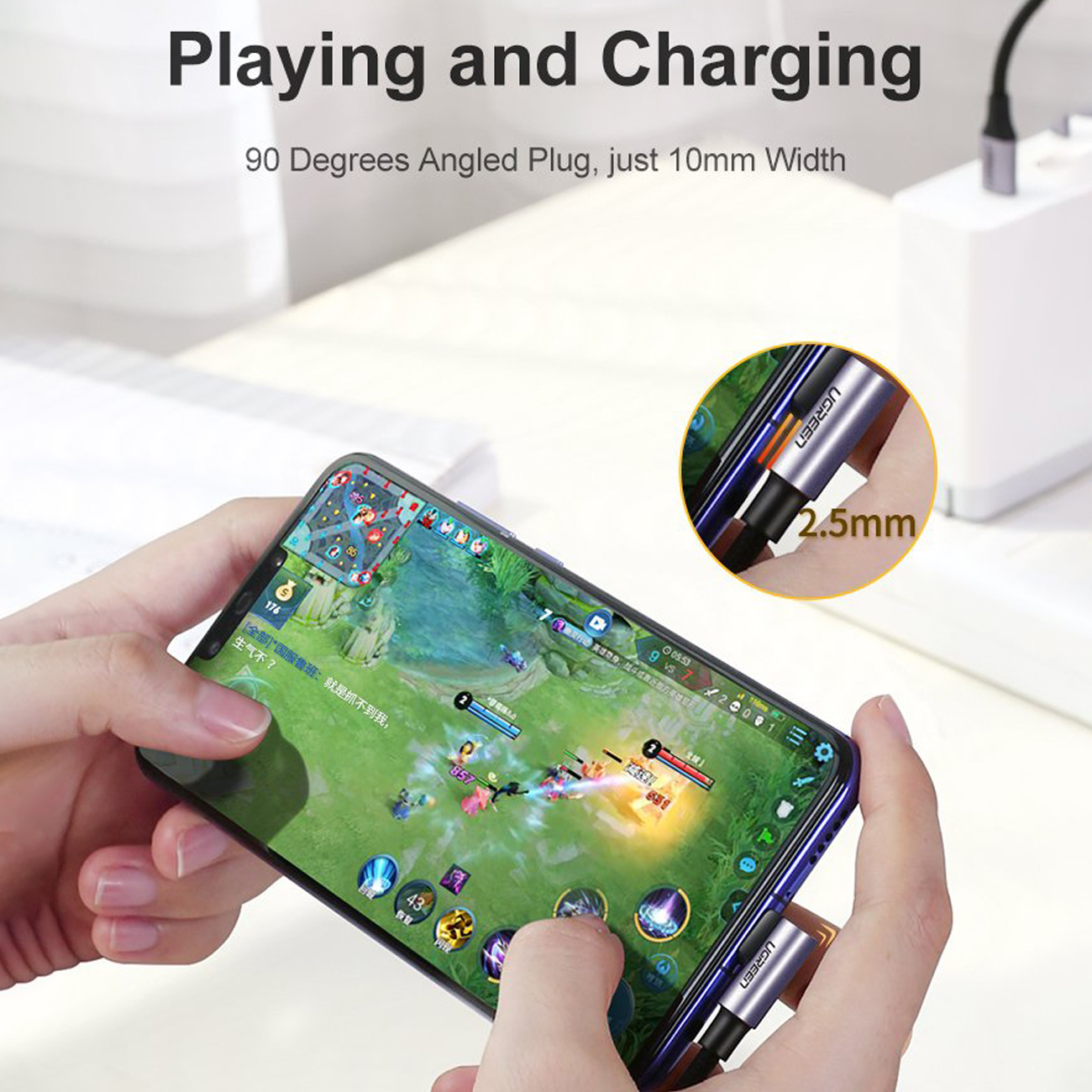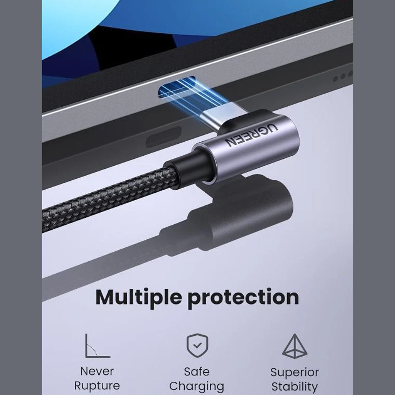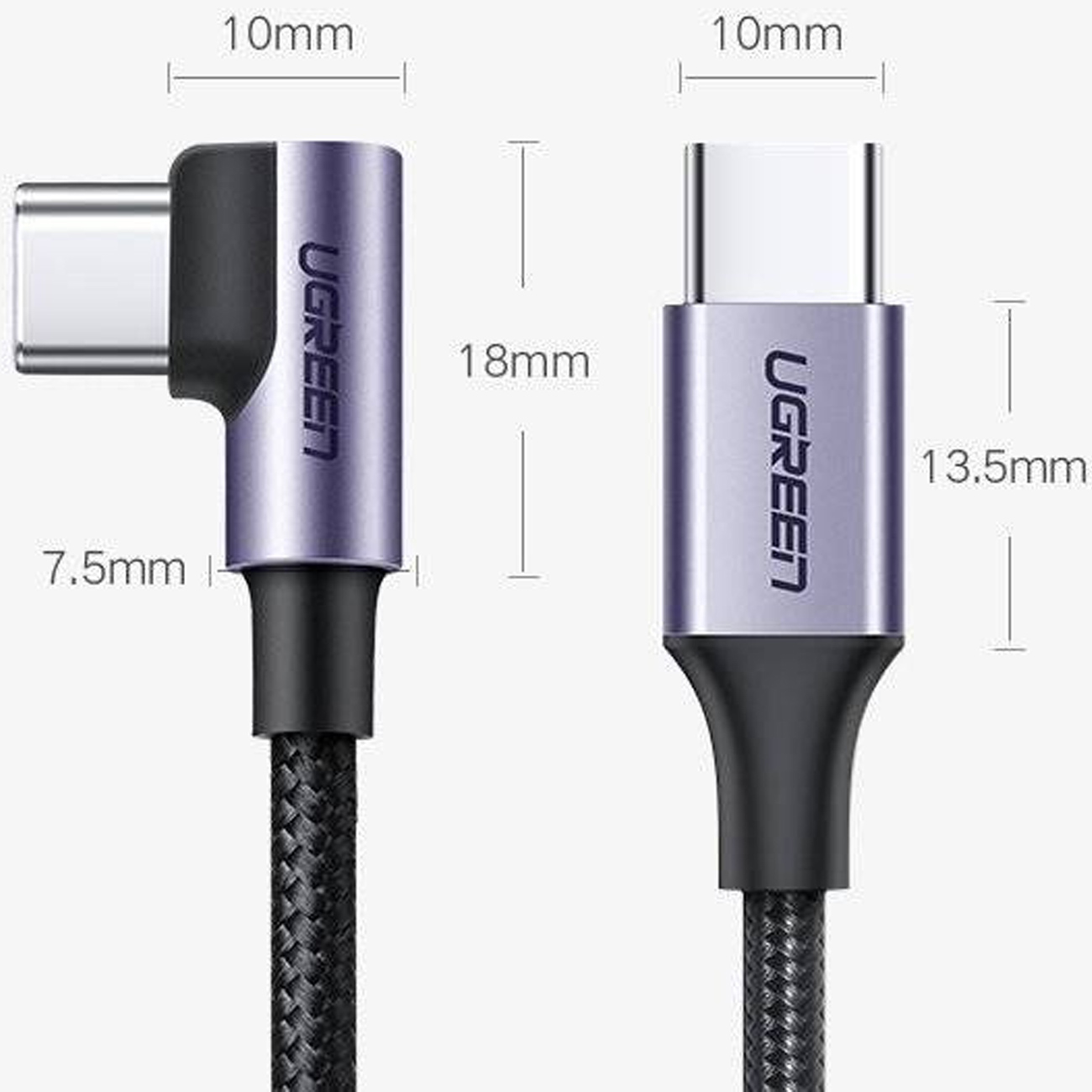 Ugreen angled cable USB Type C - USB Type C Power Delivery 60W 20V 3A 1m black-gray cable (US255 50123)