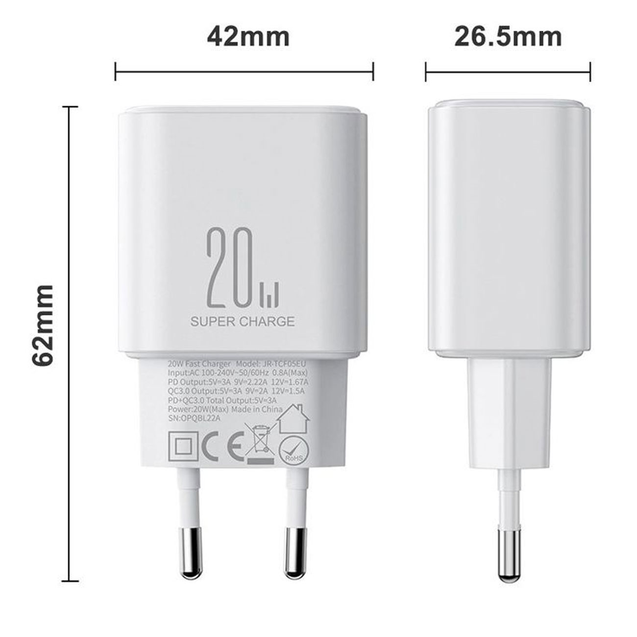Joyroom JR-TCF05 Flash Series EU 20W USB C/USB A Dual-Port Charger