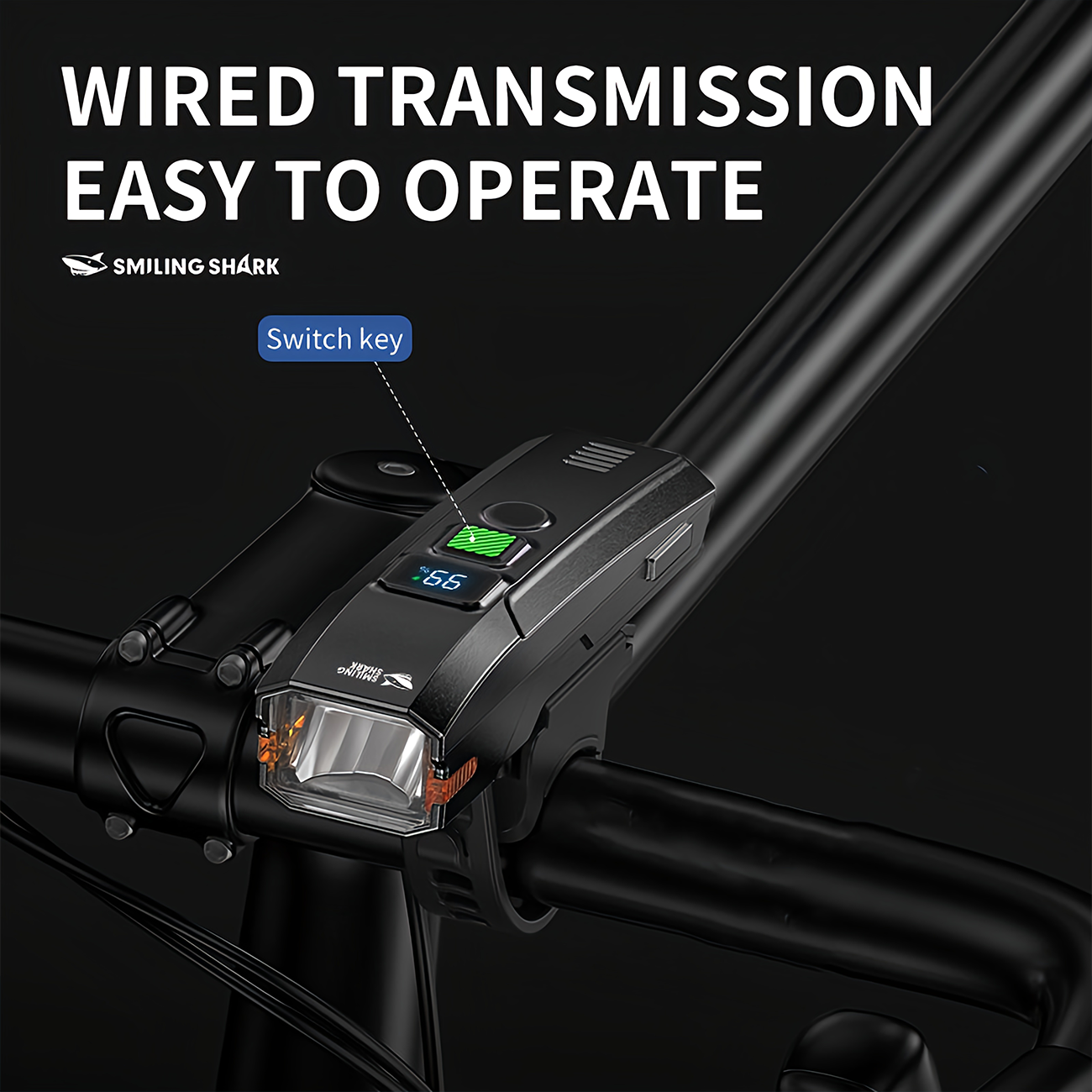 چراغ هوشمند دوچرخه اسمایلینگ شارک Smiling Shark QXD435 شارژی و ضدآب با بوق هشدار و کنترل خودکار نور