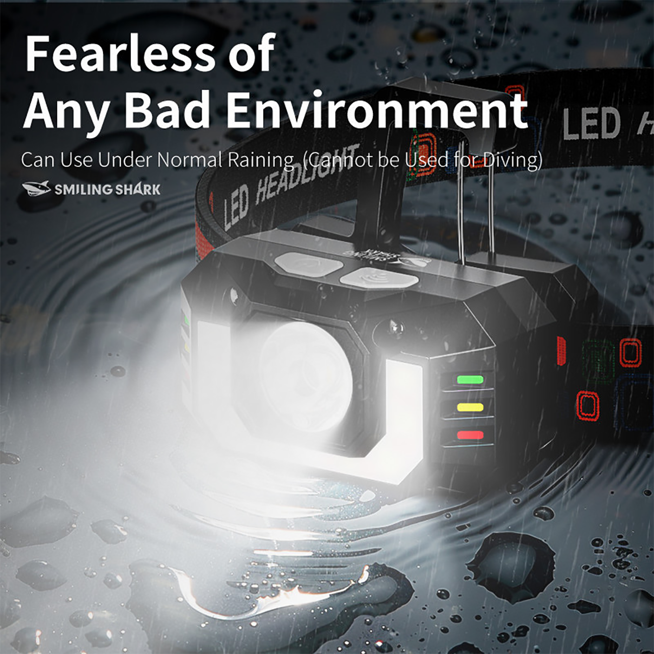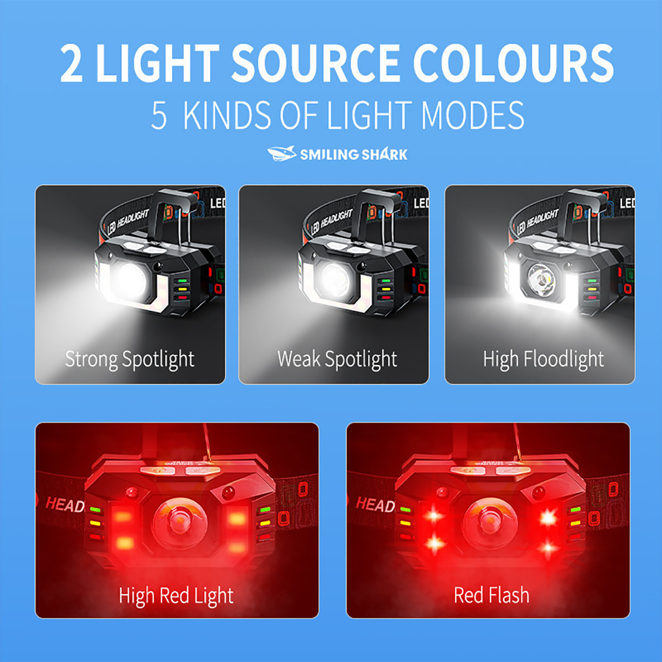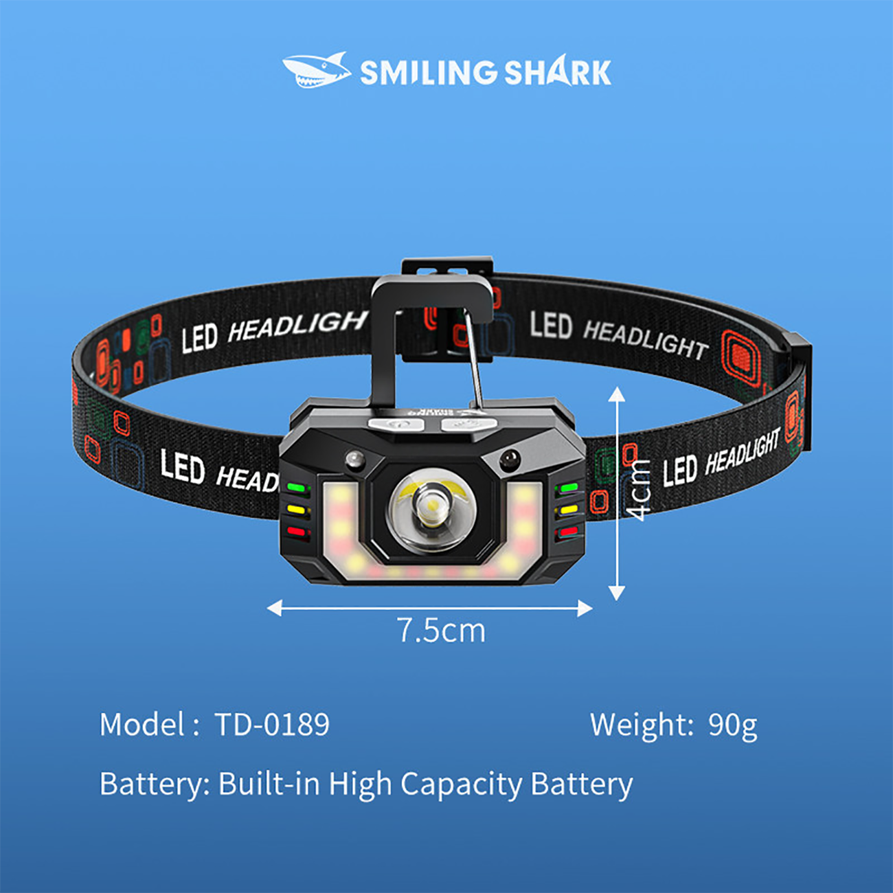 Smiling Shark TD0189 LED Head Lamp Portable Super Bright Keychain Light Type-c Rechargeable Headlight with Red Light Warning lights Waterproof