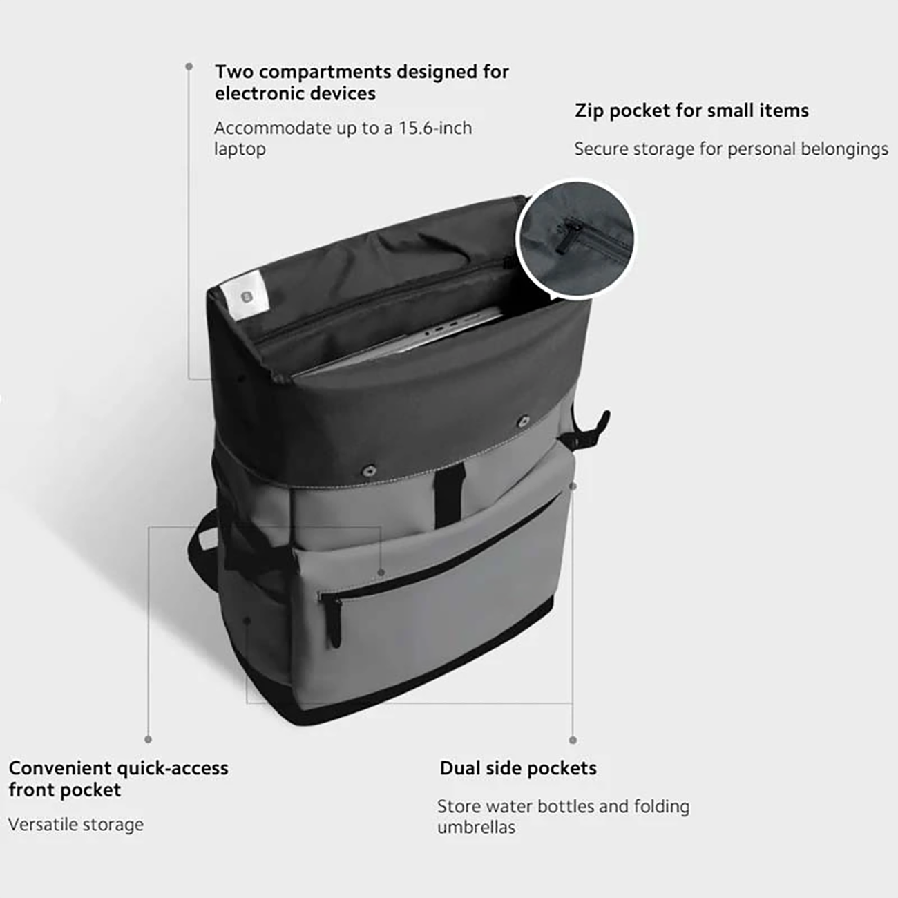 Xiaomi Mijia Rolled-edge Casual Backpack MJXXB01RM Suitable for 15.6-inch Laptop