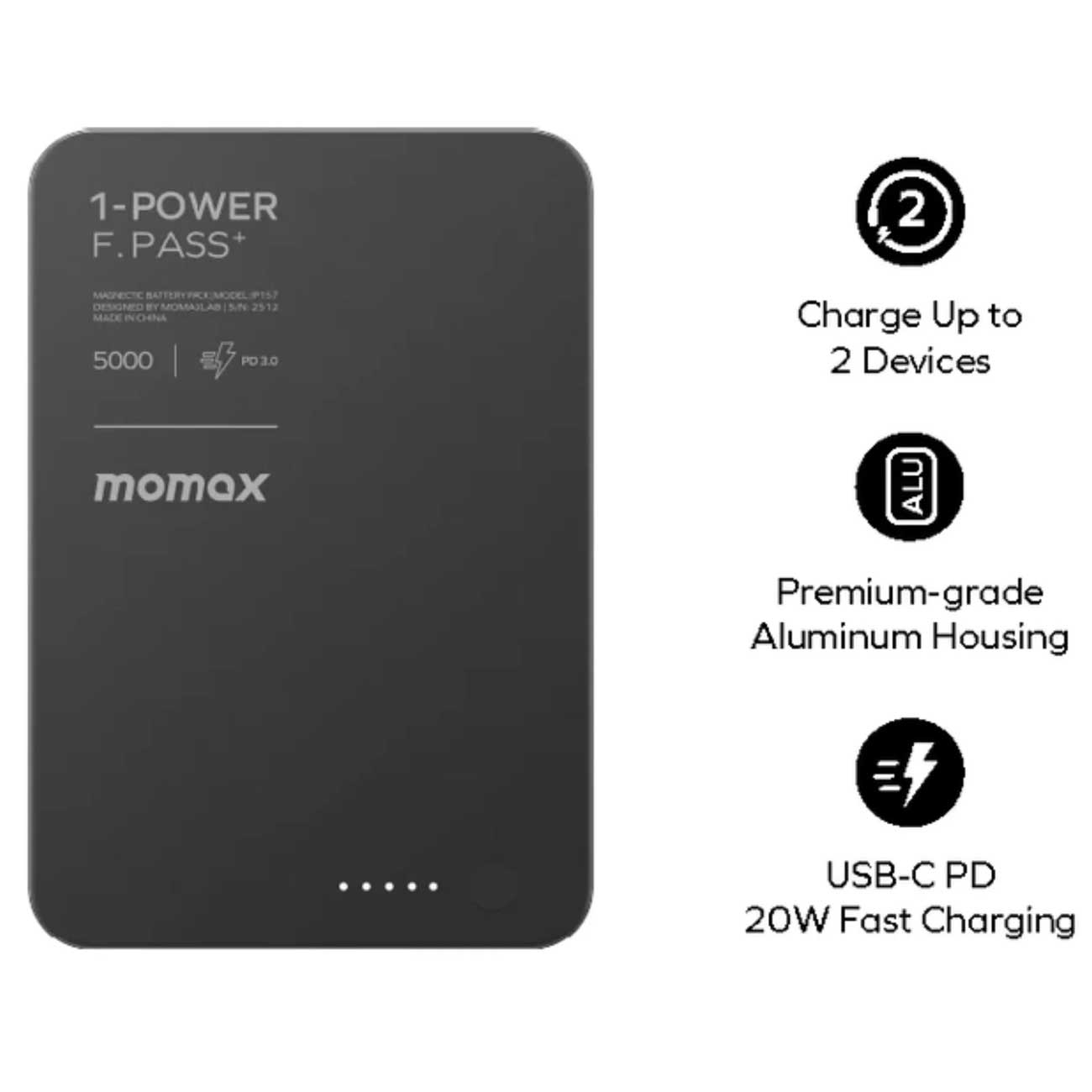 پاور بانک 5000 تایپسی 20 وات مومکس IP157 با قابلیت اتصال مگنتی به گوشی