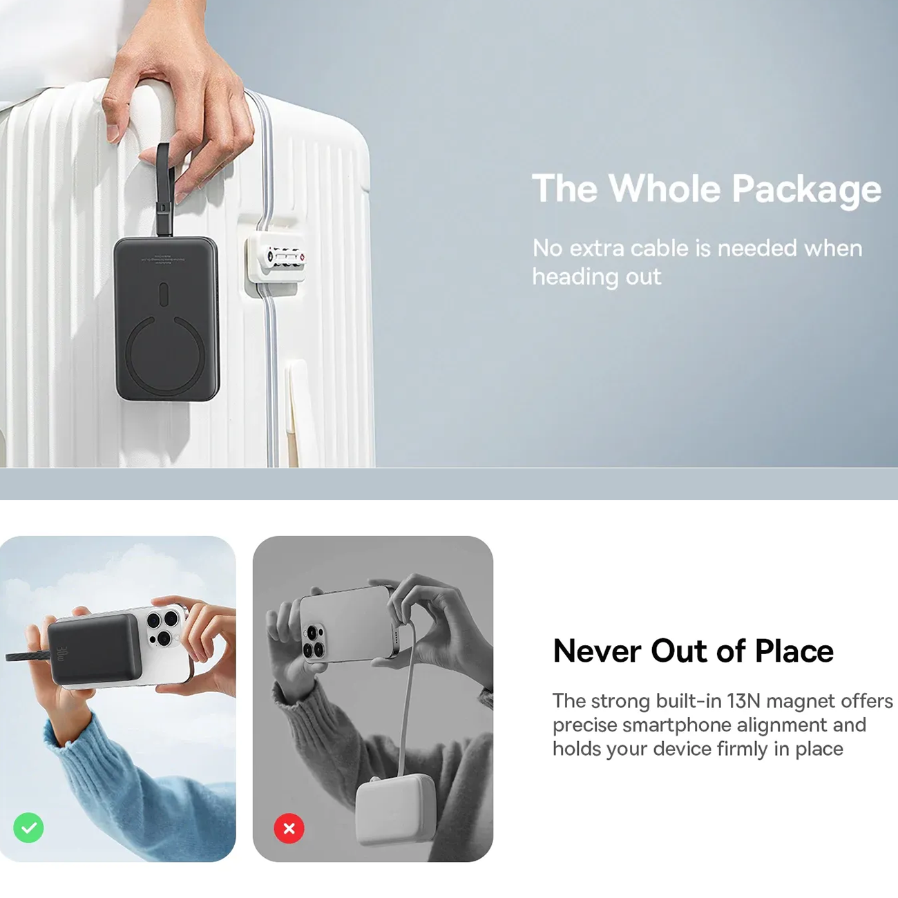 | امکانات و قابلیتها | - پاوربانک مغناطیسی، شارژ سریع- پشتیبانی از شارژ بی سیم 15 واتی و شارژ PD 30 واتی- مکانیزم مغناطیسی، MagSafe- شارژ ایمن با حفاظت 10 گانه- جذب قوی 13N |