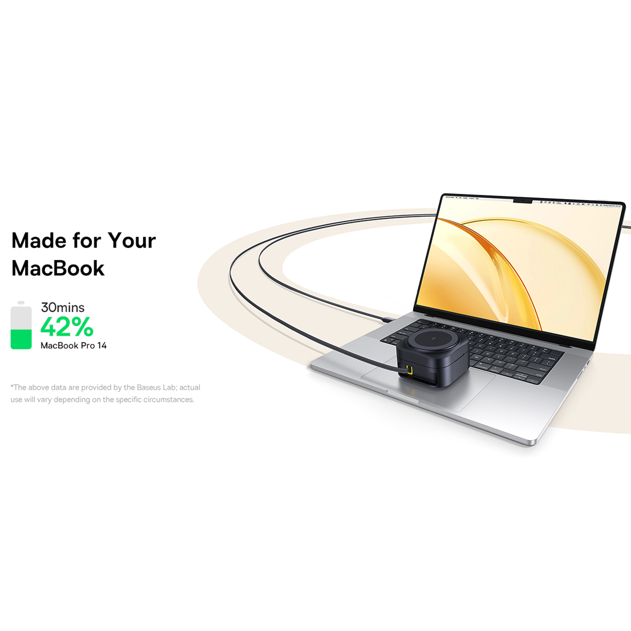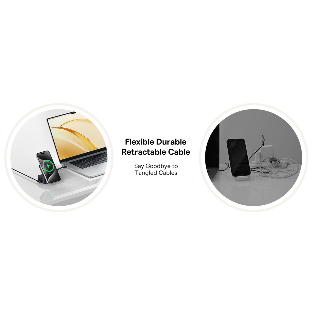Baseus PicoGo BSW-540 Wireless Charger, Qi2  67W Retractable Cable, 2-in-1 Wireless Charging Station