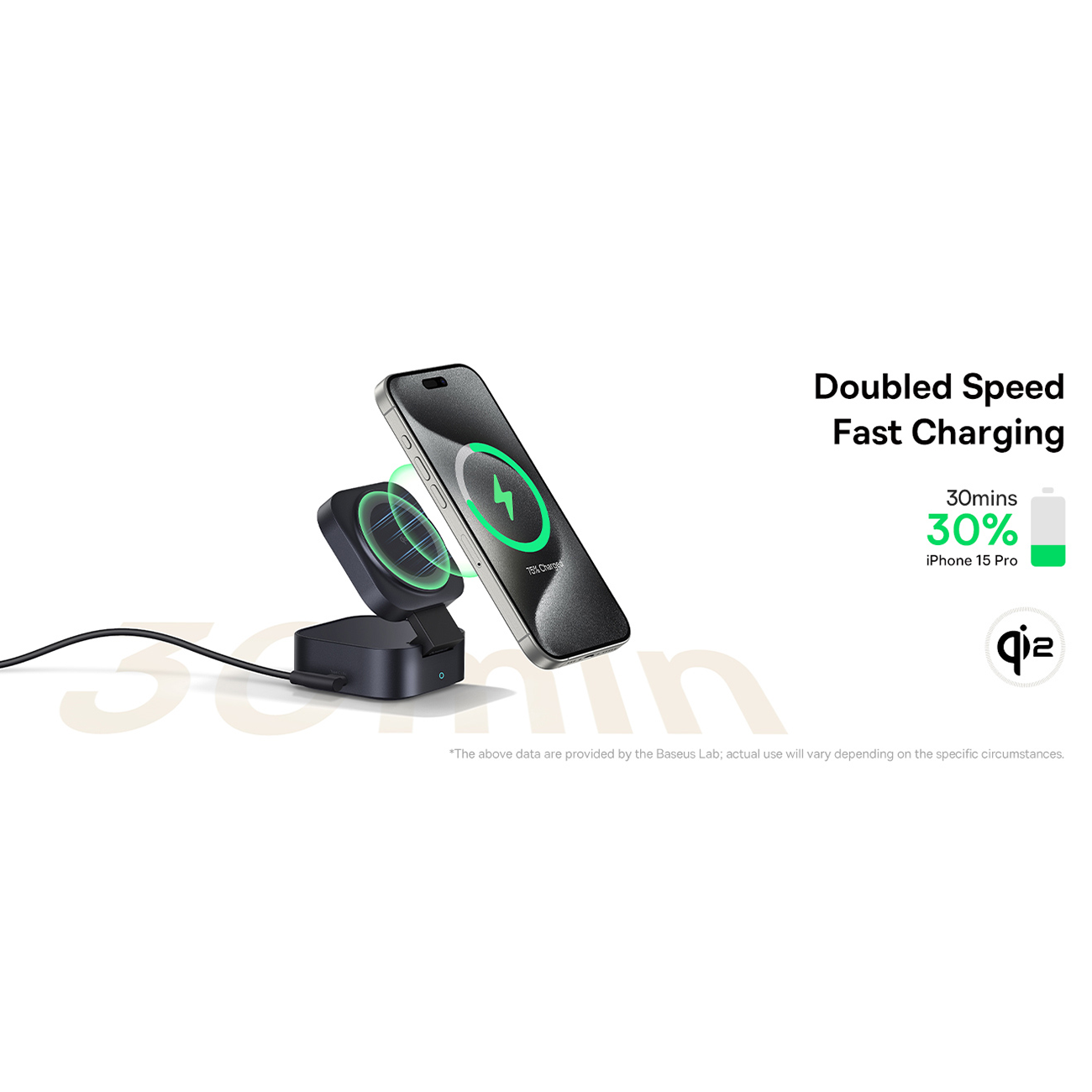 شارژر وایرلس 15 وات و هولدر موبایل مگنتی رومیزی بیسوس Baseus PicoGo BSW-540 با کابل تایپ سی جمع شونده 67 وات