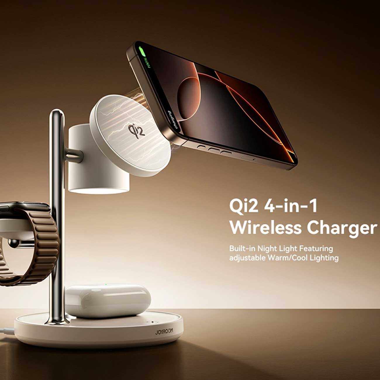 JOYROOM JR-W23 4 in 1 Magnetic Wireless Charger Qi2 Fast Charging Stand with Night Light