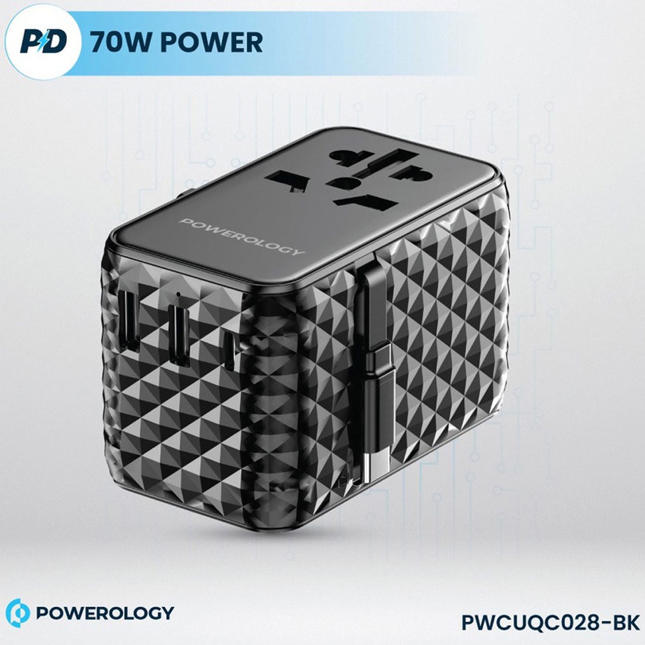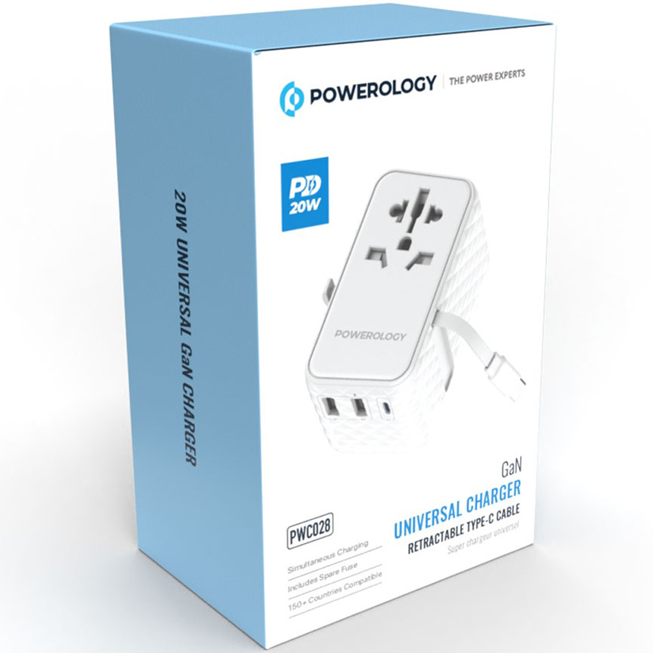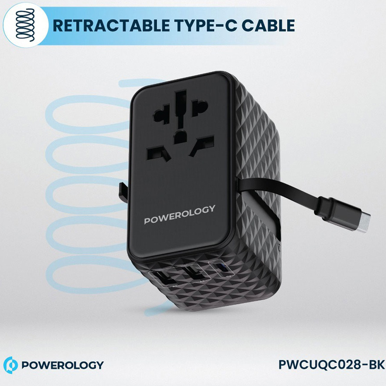 Powerology GaN Universal Charger Retractable Type-C Cable PWCUQC028