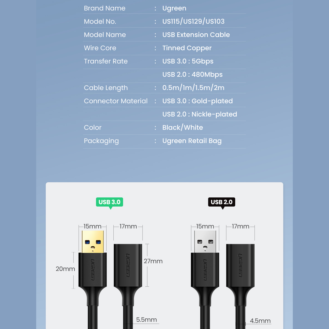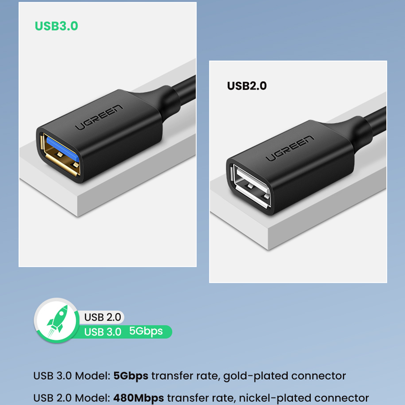 Ugreen US129 10368 USB 3.0 Male to USB Female Extension Cable 1m 24K Gold-Plated