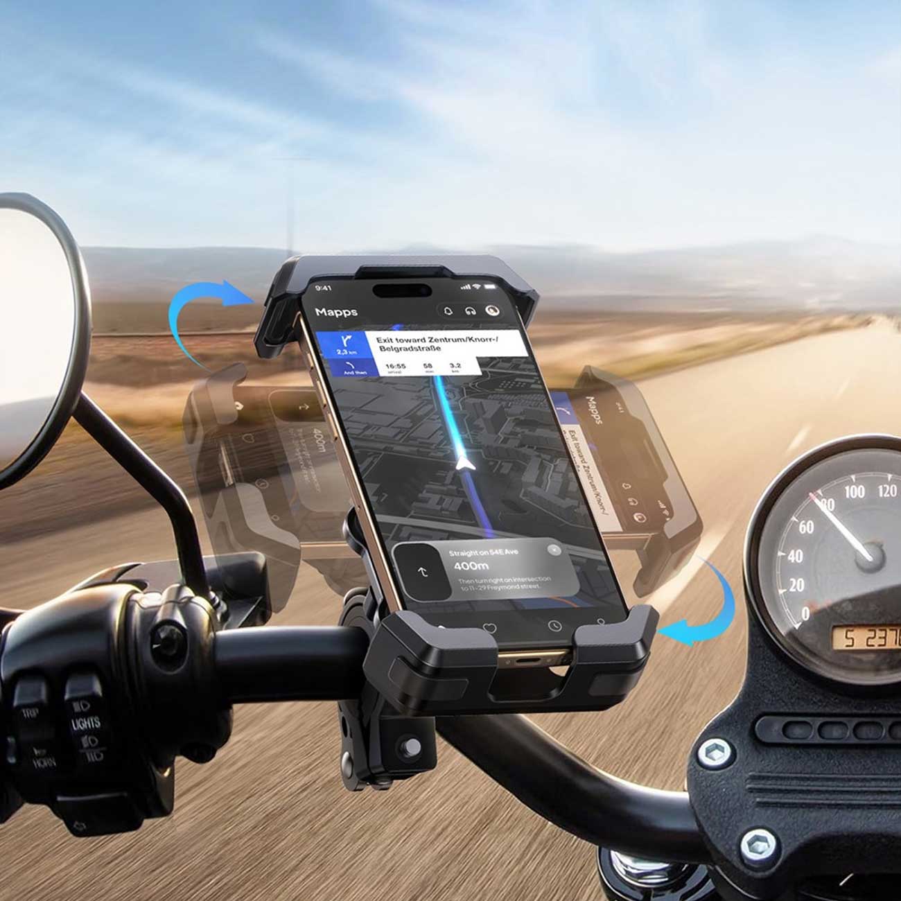 قابلیت چرخش 360 درجه این هولدر به شما امکان میدهد تا گوشی را بهصورت افقی یا عمودی تنظیم کنید. این ویژگی بسیار کاربردی برای مسیریابی، پخش موسیقی و پاسخ به تماس در حین رانندگی است.