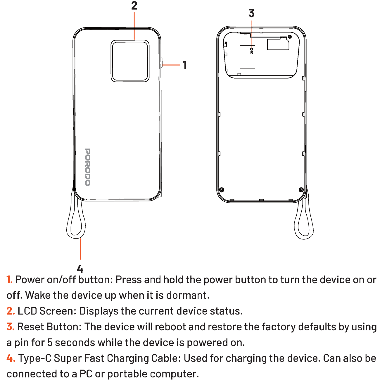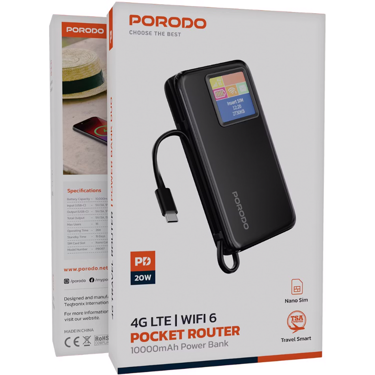 Porodo 4G LTE | WiFi 6 Pocket Router with 10000mAh Power Bank PB087