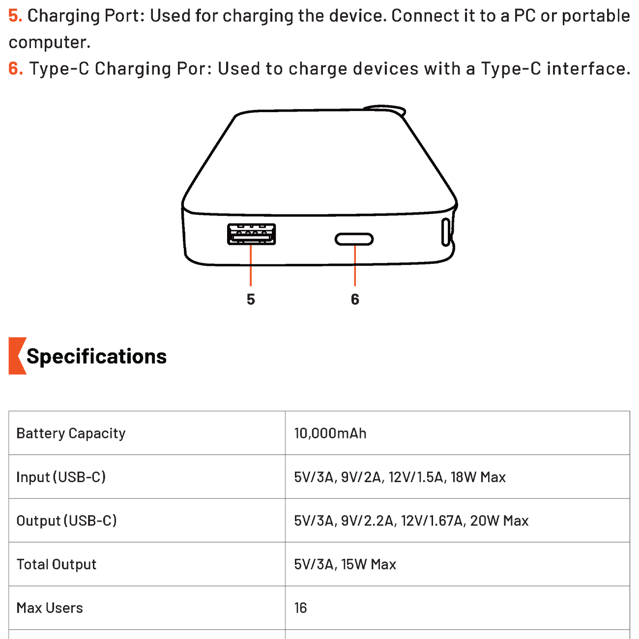 | توان خروجی | USB-C: 5V/3A, 9V/2.2A, 12V/1.67A (20W Max) USB-C Cable: 5V/3A, 9V/2.2A, 12V/1.67A USB-A: 5V/3A, 9V/2.2A, 12V/1.67A |