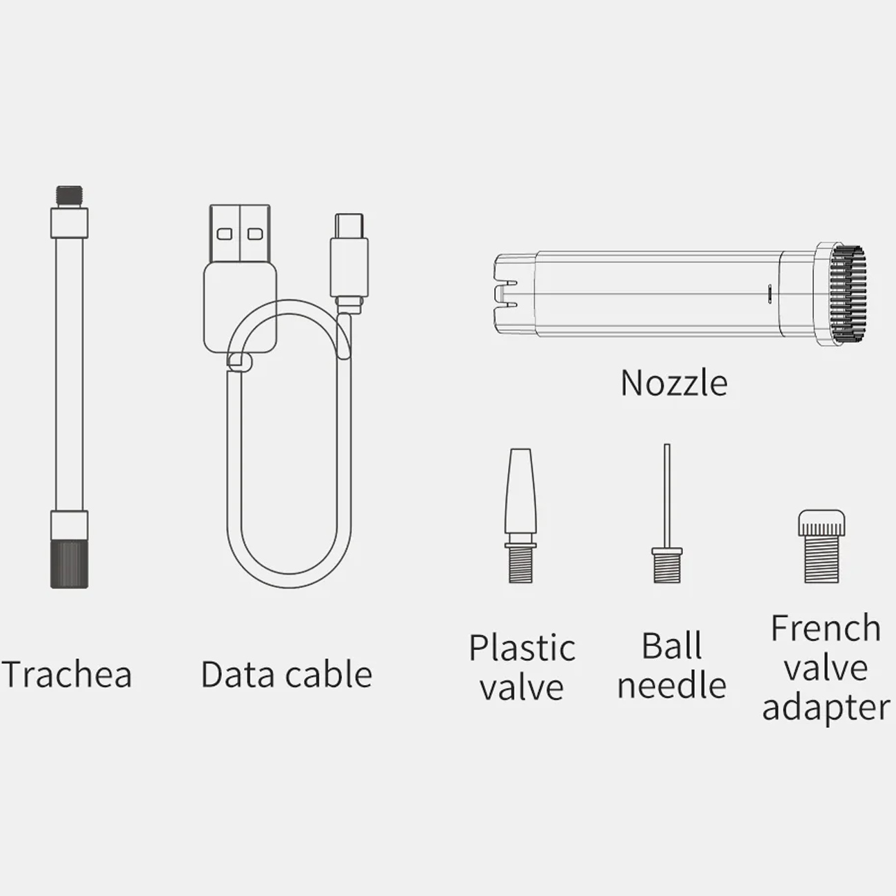 | نازل و لوازم جانبی | نازل تخت، مجرای هوا، کابل داده، شیر پلاستیکی، سوزن توپ، تبدیل فرانسوی |