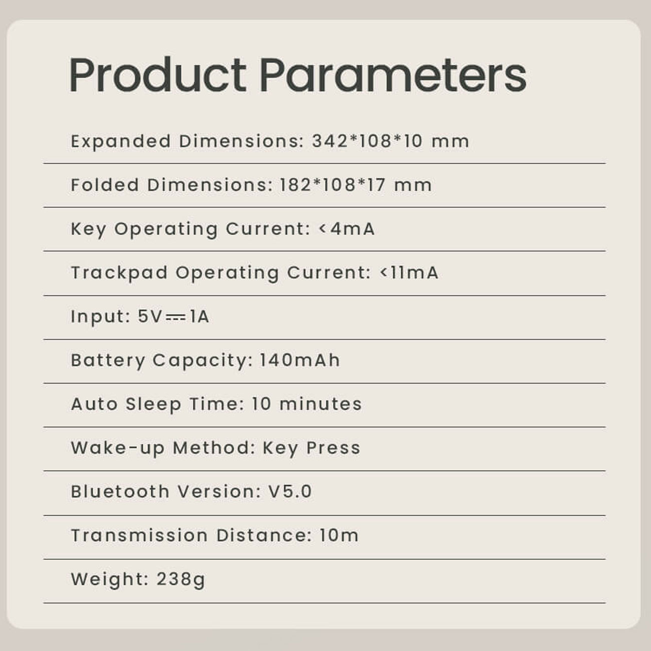 | ابعاد در حالت باز | 342×108×10 میلیمتر |