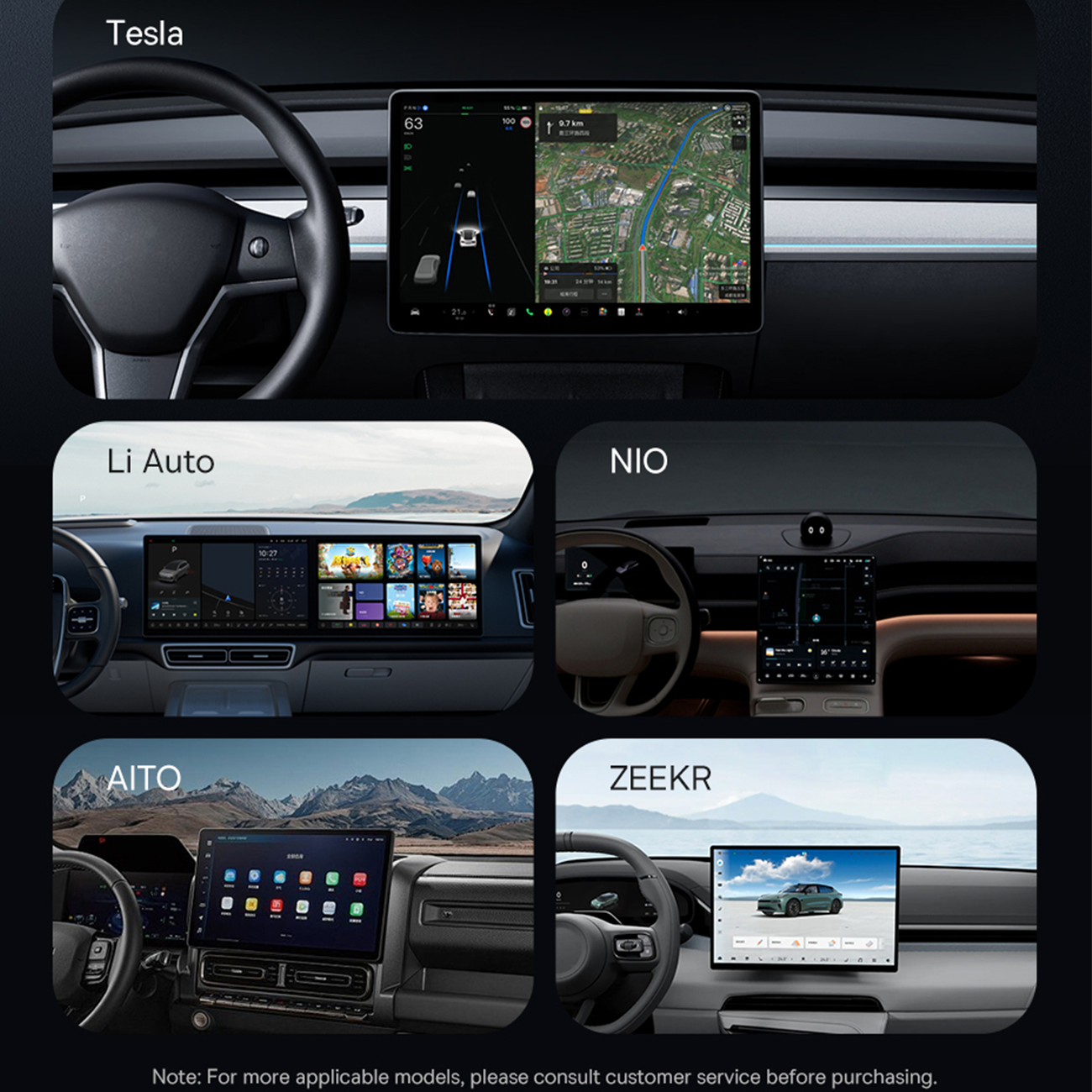 | مناسب برای خودروهای | تسلا (Tesla)، NIO، Li Auto، AITO، ZEEKR و خودروهای جدید با مانیتور مرکزی شناور |