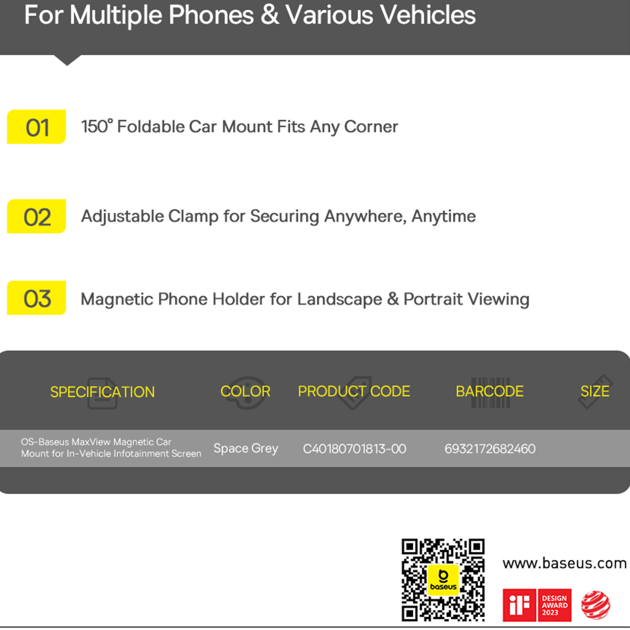 Baseus MaxView Magnetic Car Mount for In-Vehicle Infotainment Screen CM045 C40180701813-00