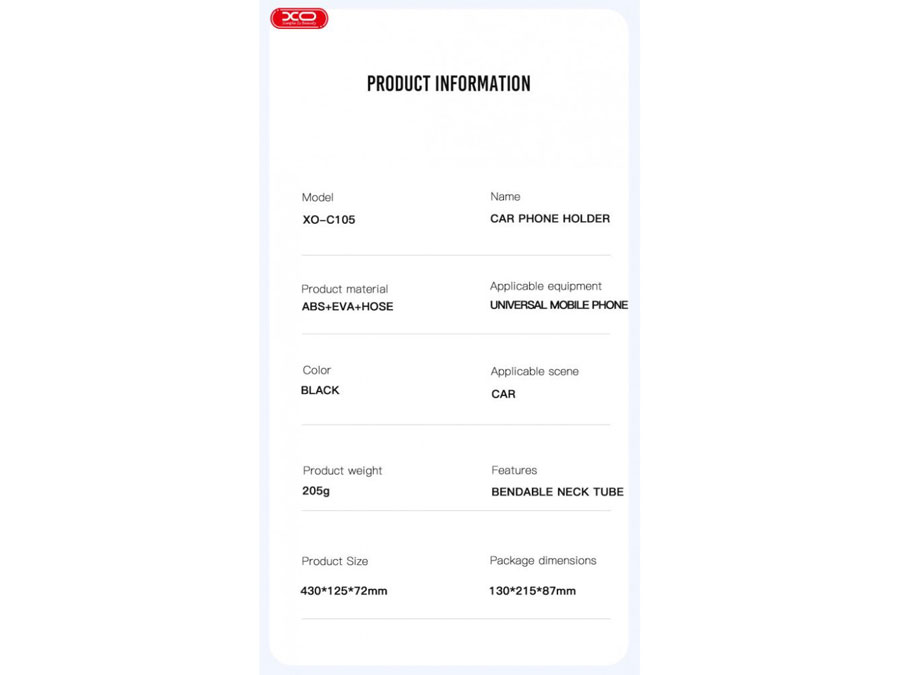| مشخصات هولدر گوشی موبایل جالیوانی خودرو بازو بلند ایکس او XO C105 | |
