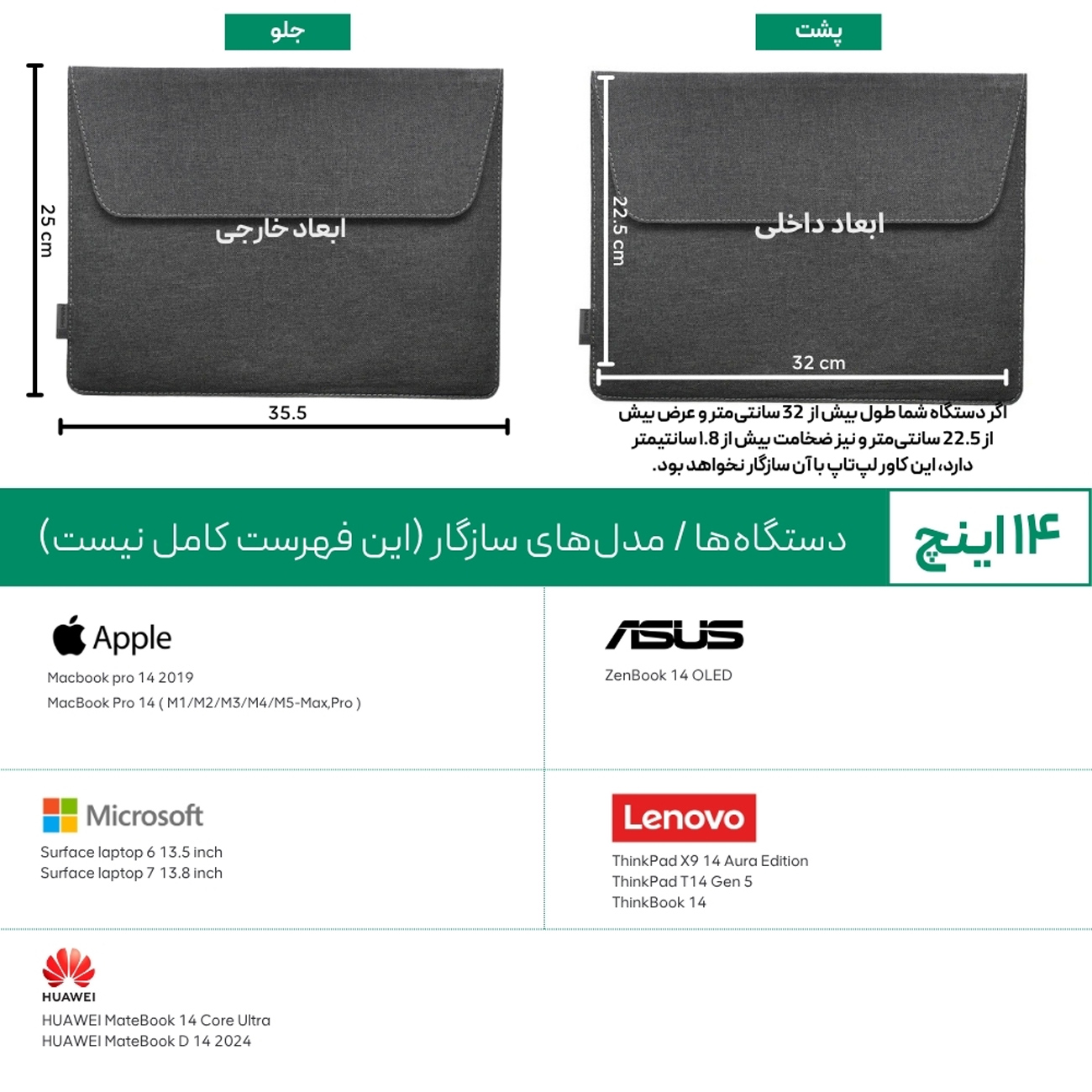 | سازگار با | لپتاپ 13، 14 و 16 اینچی |