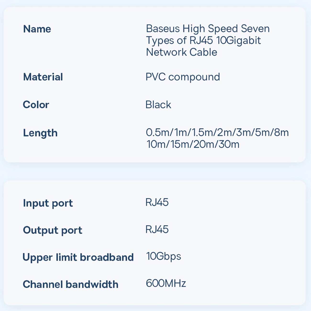 Baseus 5M High Speed RJ45 CAT 7 Gigabit Network Cable WKJS010501