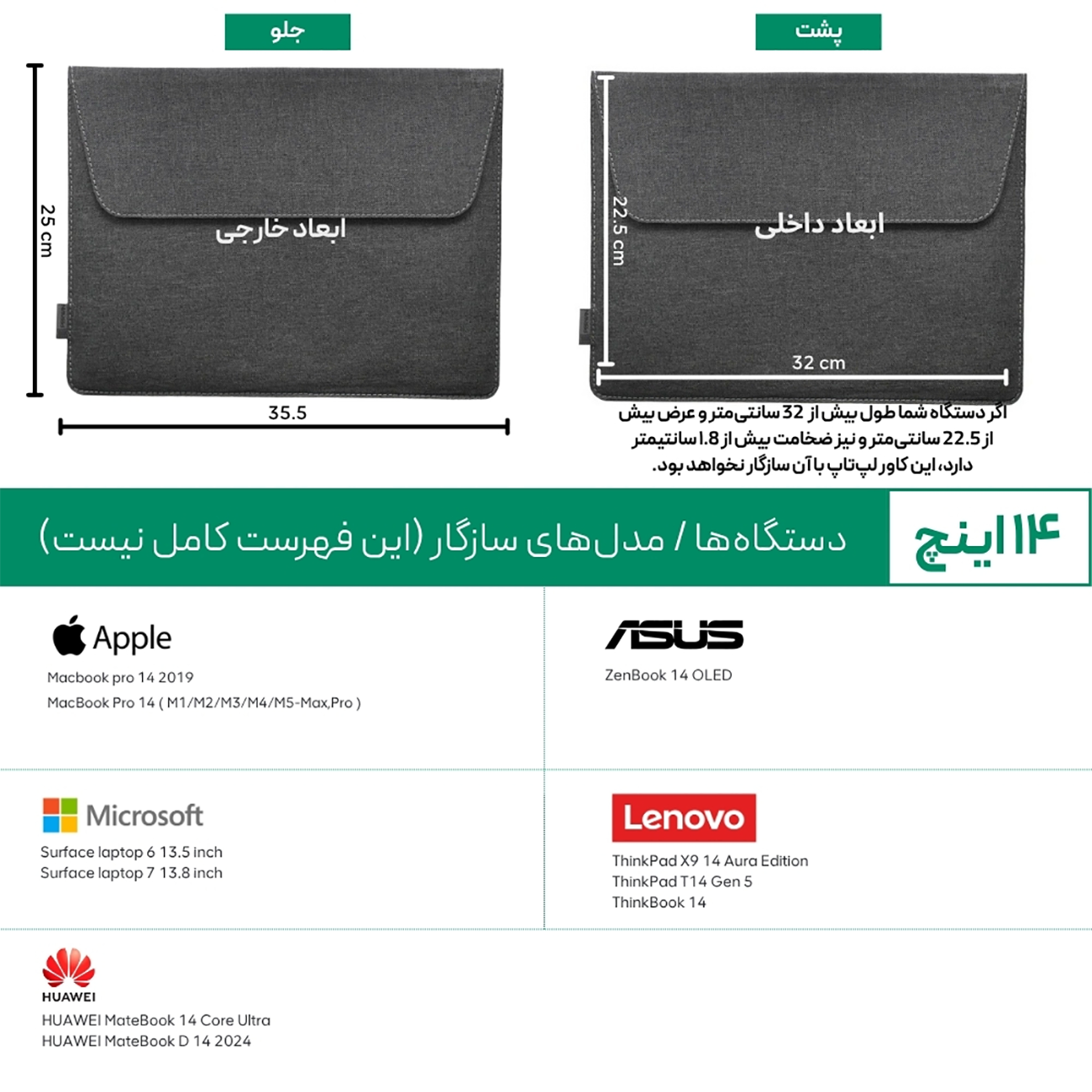 | سازگار با | لپ تاپ ۱۳ اینچ، 14 اینچ، 16 اینچ |