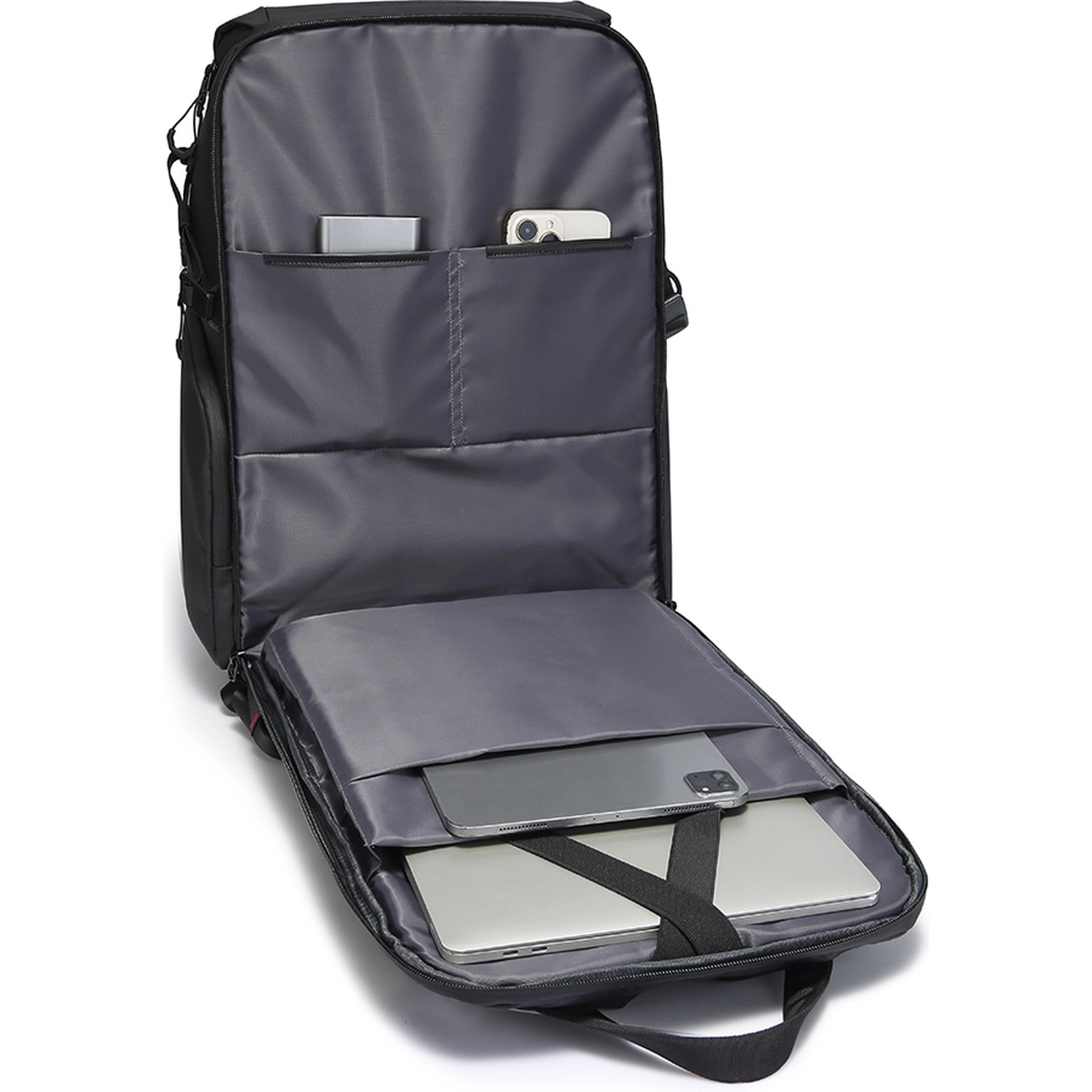 | تعداد جیب | دو جیب اصلی برای لپ تاپ، آیپد و دوربین + جیبهای نظمدهنده داخلی + جیبهای بیرونی |