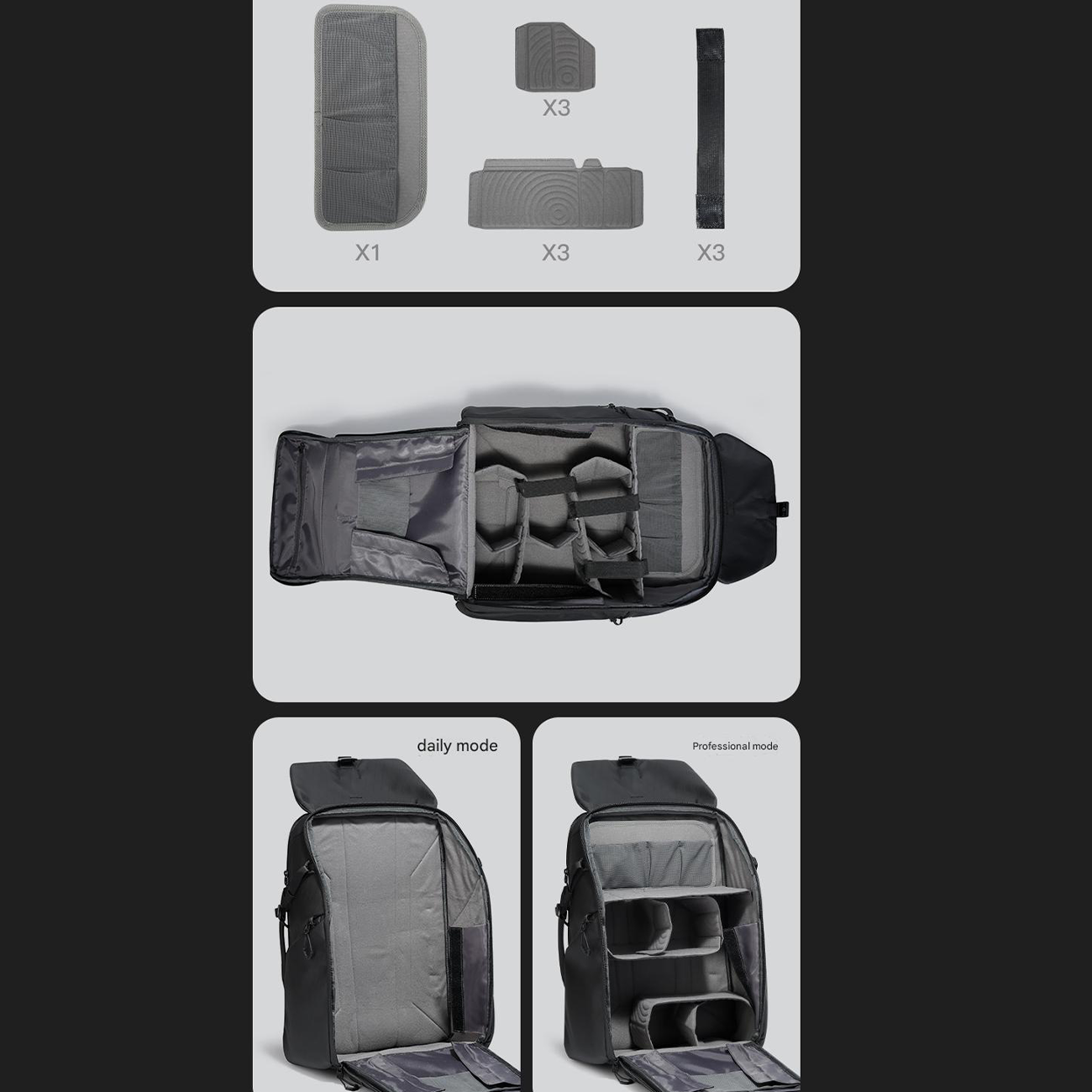 | سازگار با | دوربین DSLR و میرورلس + چند لنز + سهپایه + لپتاپ 15.6 اینچ + آیپد 13 اینچ + پاوربانک + بطری آب + چتر و … |