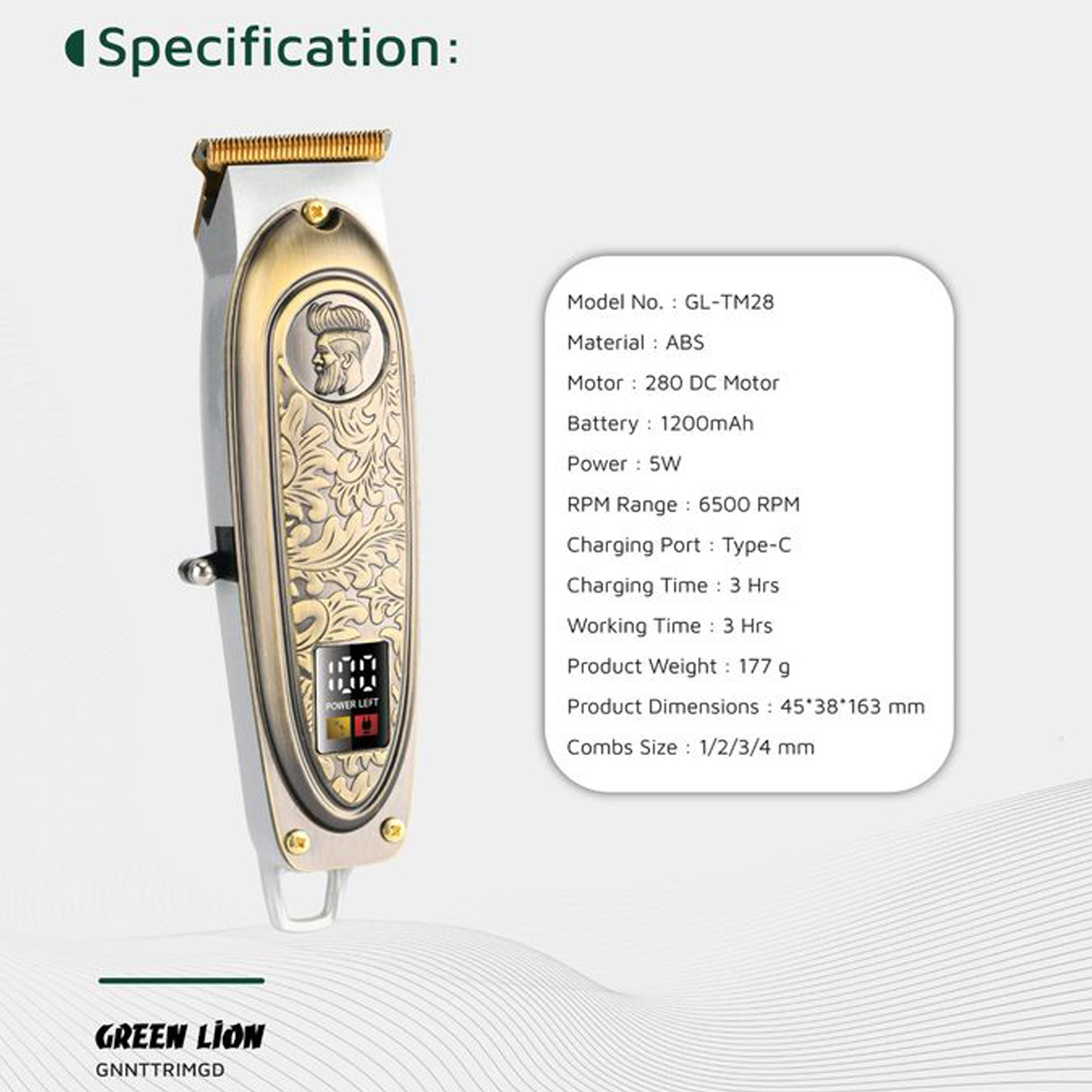 Green Lion Gentleman Hair Trimmer GNNTTRIMGD/GL-TM28