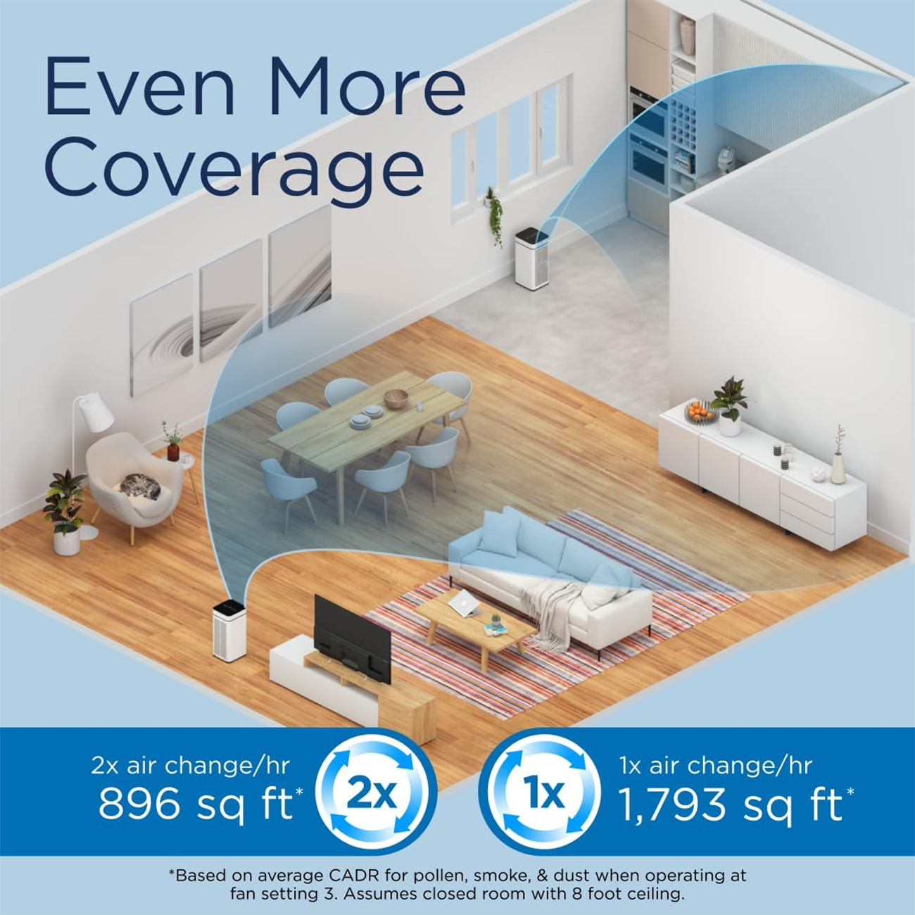 | نرخ تحویل هوای پاک (CADR) | 896 فوت مربع در یک ساعت |