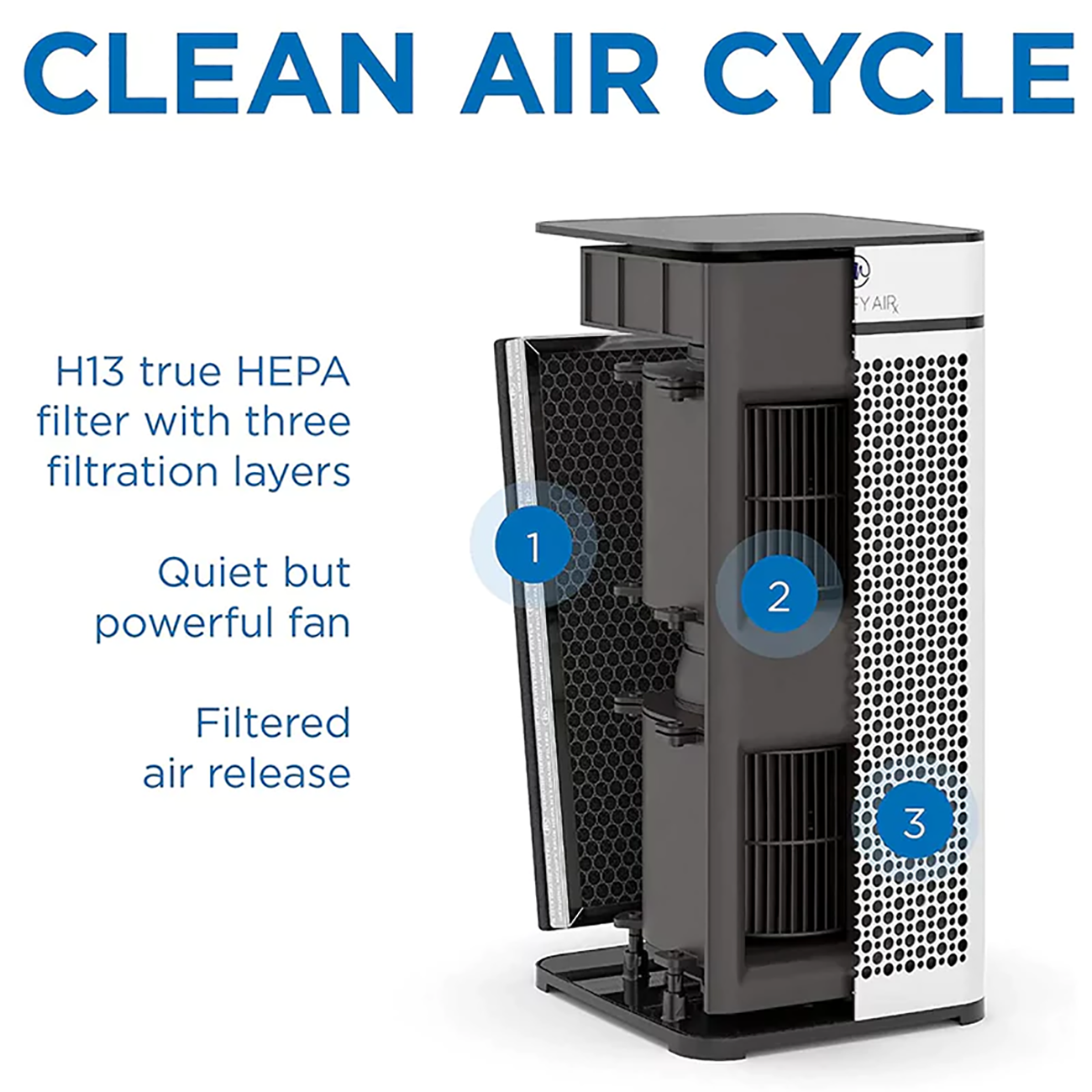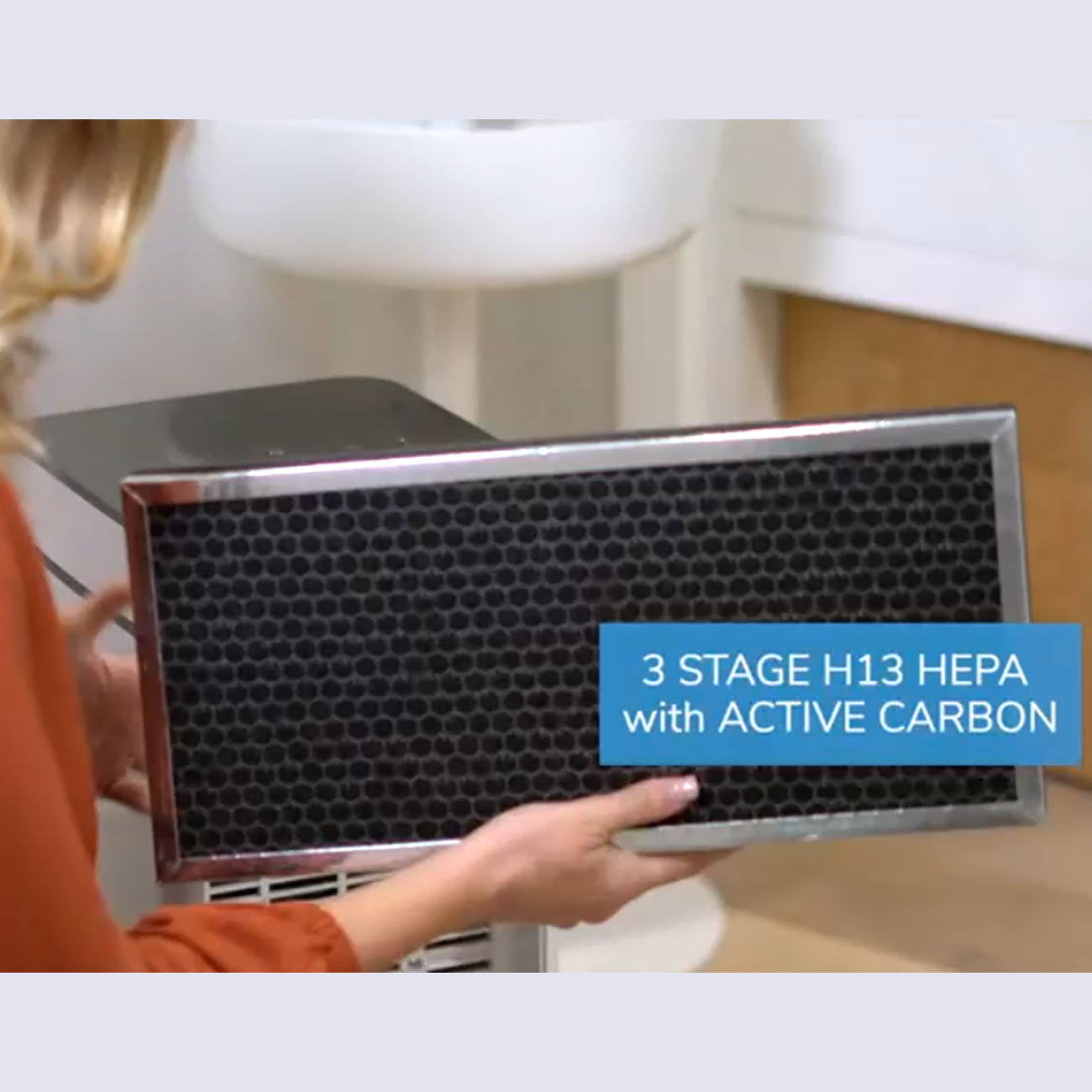 | فیلتر | سهمرحلهای شامل پیشفیلتر، True HEPA H13 و فیلتر کربن فعال |