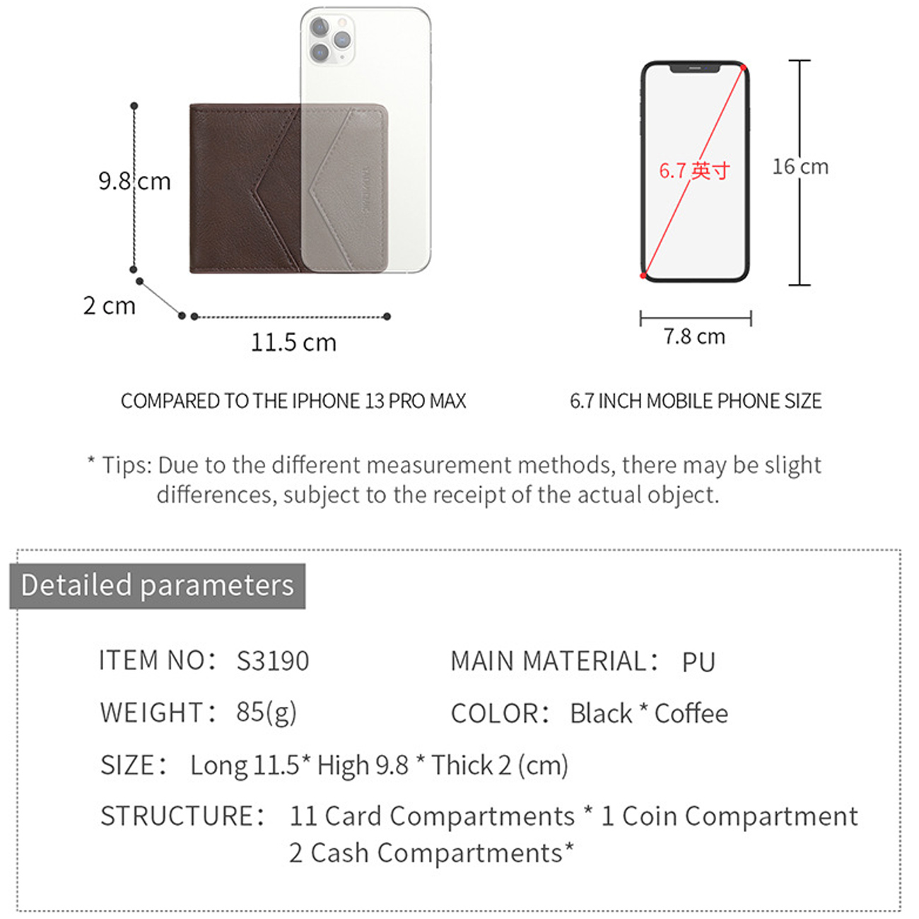 | ساختار داخلی | 11 جای کارت، 1 محفظه سکه، 2 جای اسکناس |