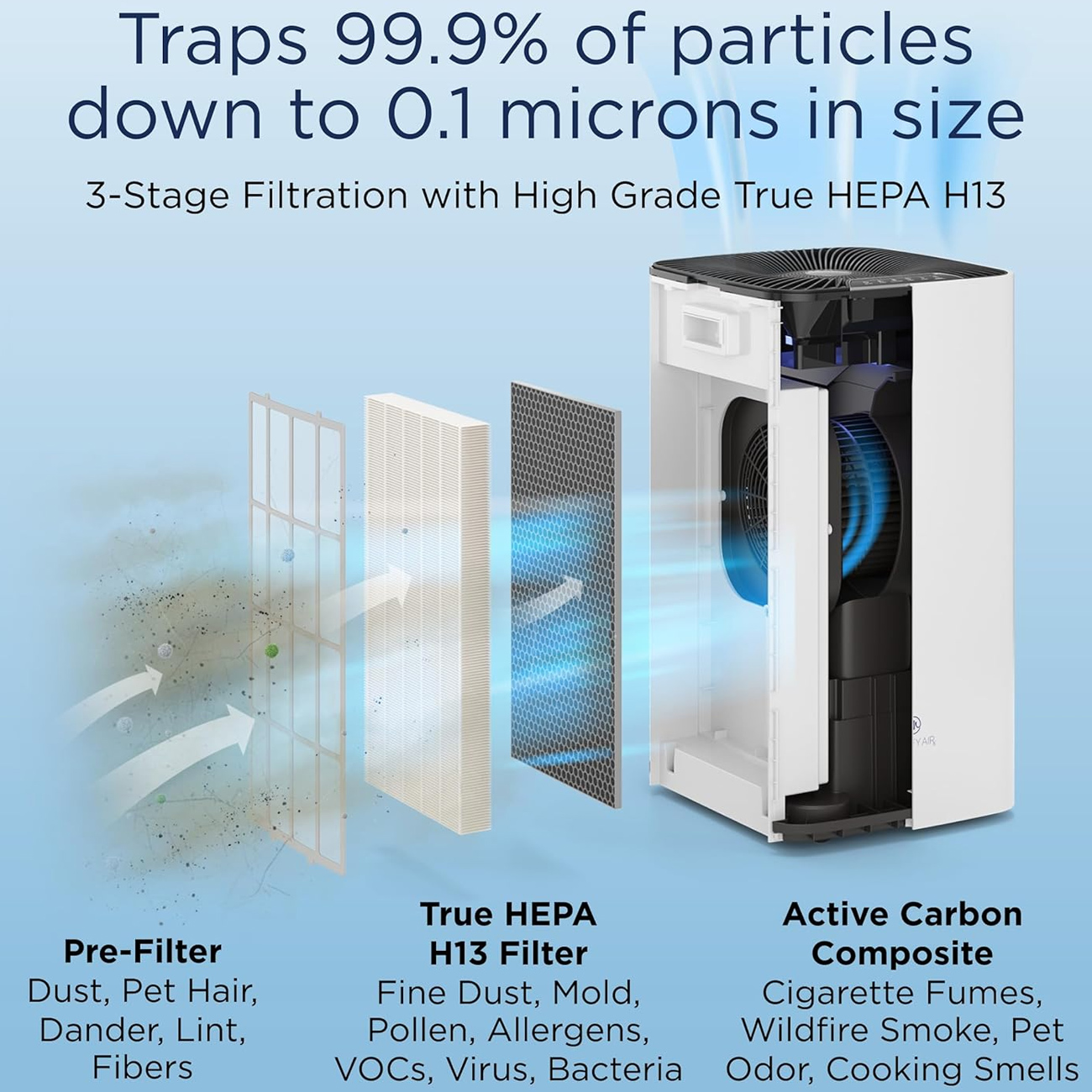| سیستم فیلتراسیون | سه مرحله ای (پیش فیلتر، True HEPA H13 یا H14، کربن فعال) |