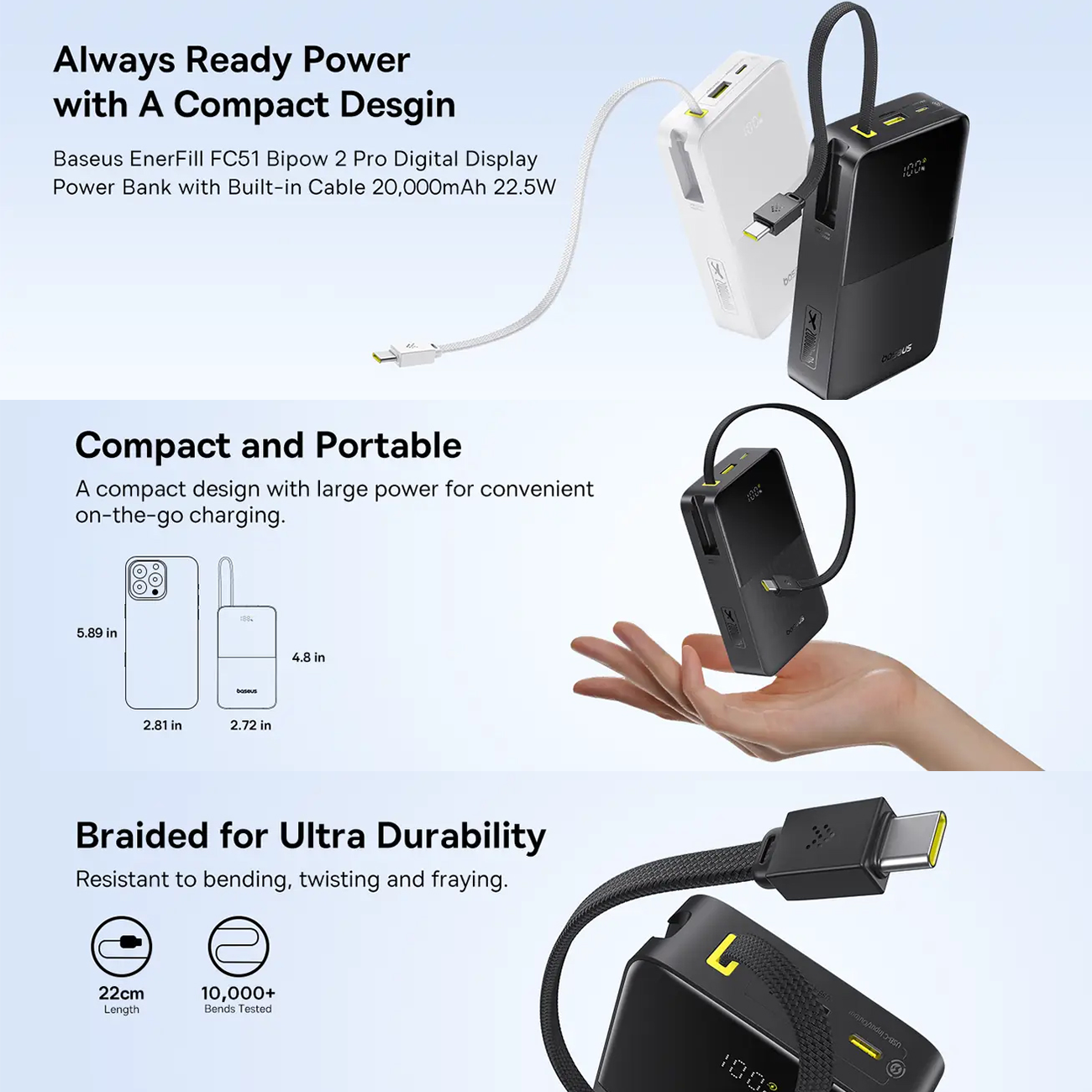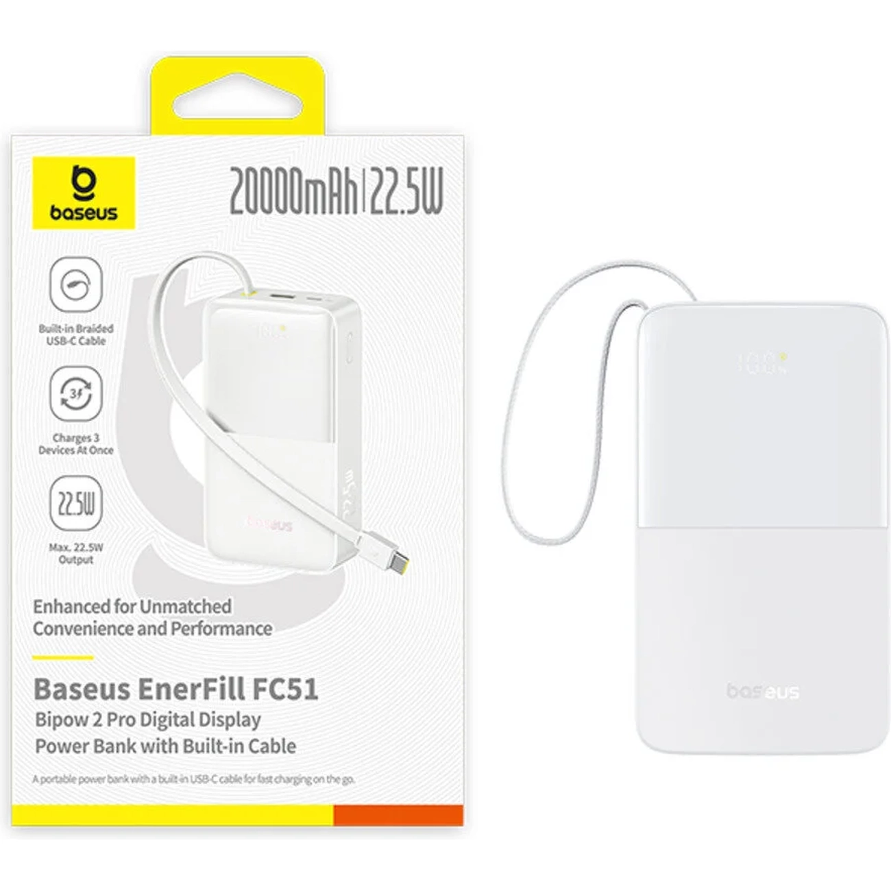 Baseus EnerFill FC51 Bipow 2 Pro Digital Display Power Bank with Built-in Cable 20000mAh 22.5W PPBD2P-2022