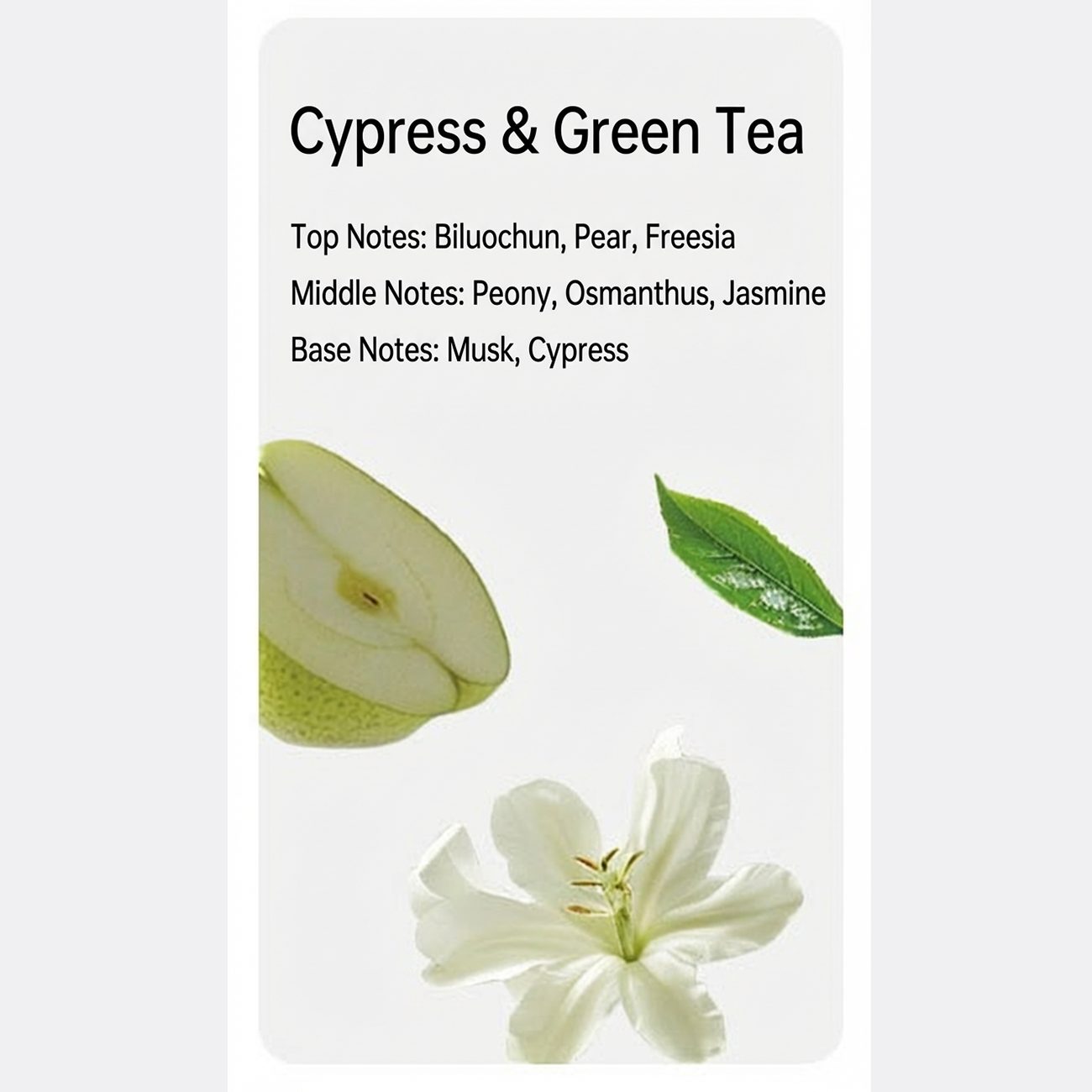 | رایحه | سرو و چای سبز (Cypress and Green Tea Scent) |