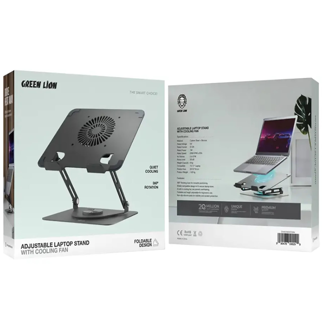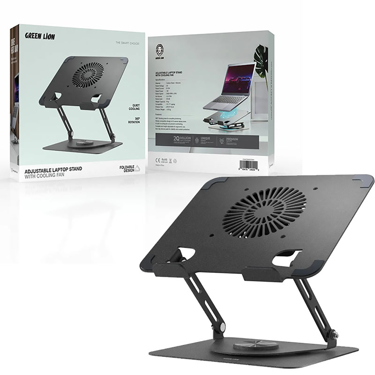 Green Lion GNAD360STDBK Adjustable Laptop Stand with Cooling Fan